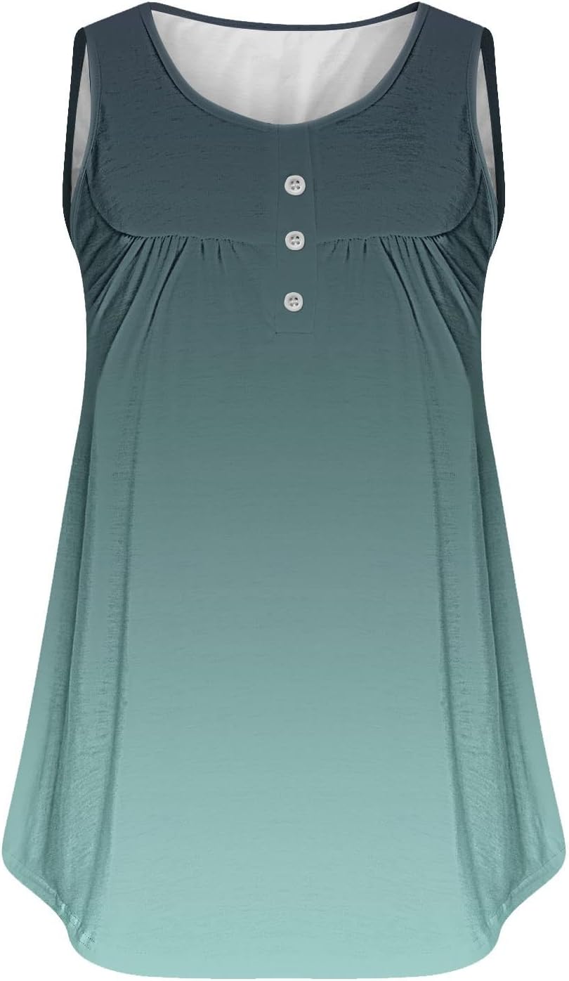 Womens Henley Button Down Tunic Tank Top Front And Back Pleated Summer Sleeveless Shirts Tops