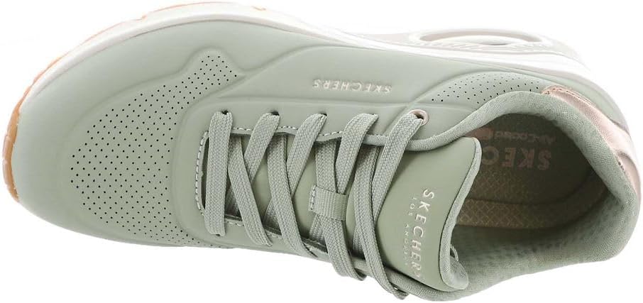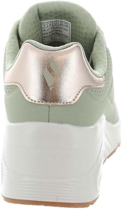 Update your wardrobe with a boost of comfort wearing Skechers Street Uno Wedge – HI Steps. This fashion style features a durabuck upper with metallic duraleather trim, Skechers Air-Cooled Memory Foam insole, and a platform wedge with a visible Skech-Air air-cushioned midsole.