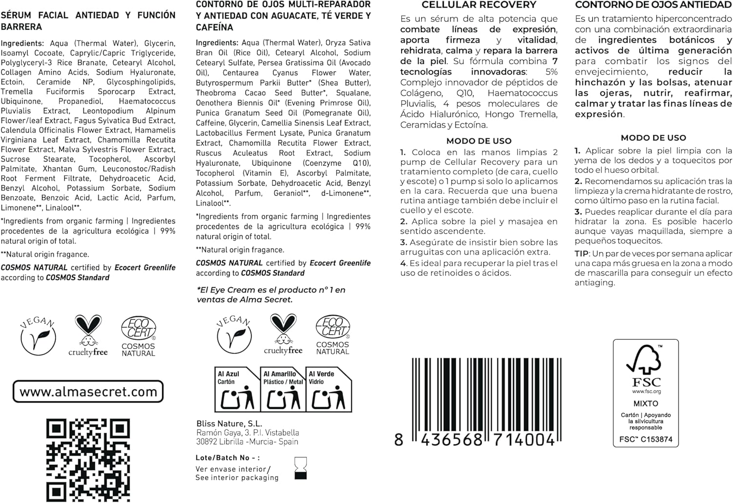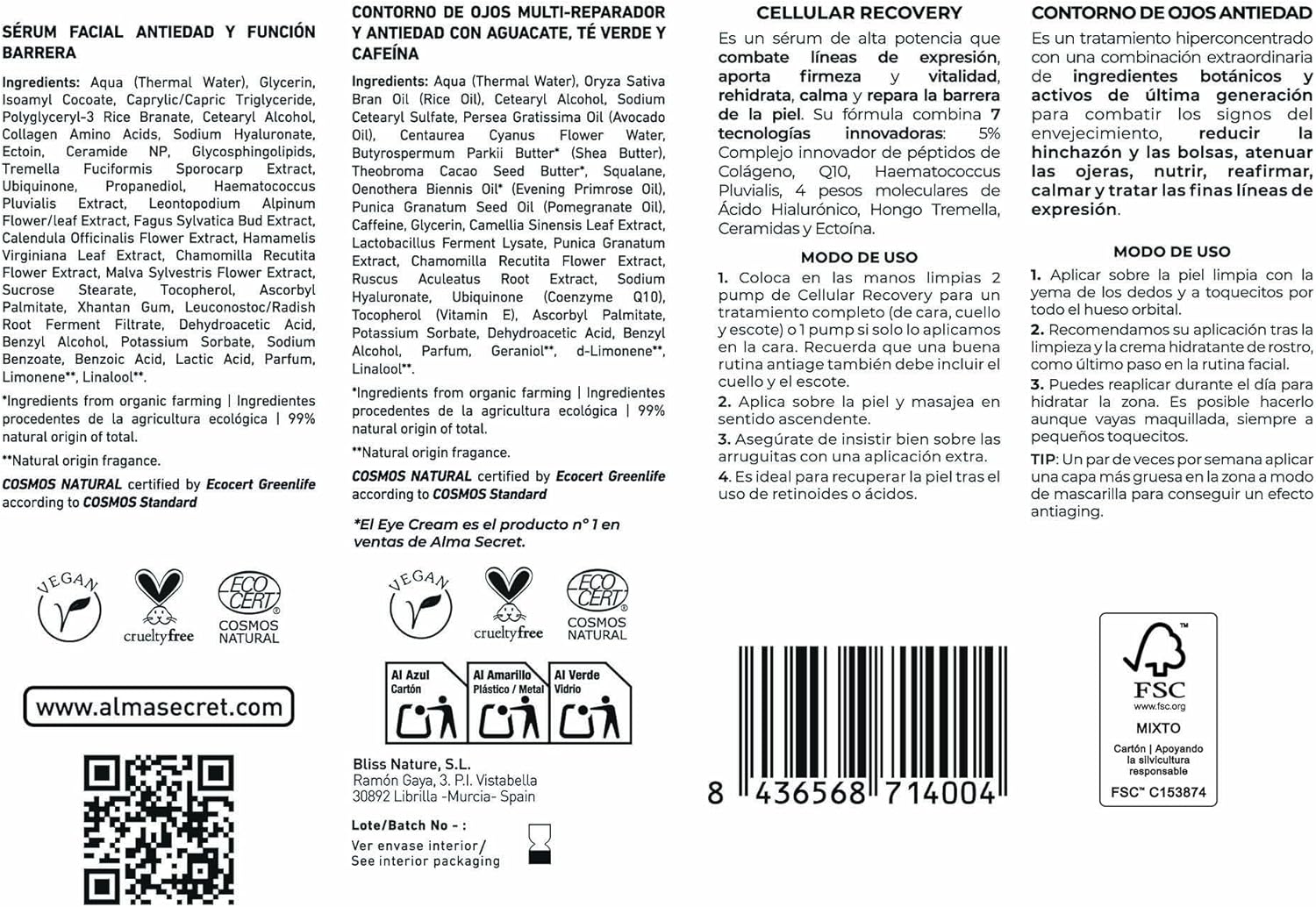 FOR ALL SKIN CARE RUITNS: Both products (eye cream and Alma Secret serum) are suitable for use day and night, integrating perfectly with your women’s facial care routine to improve the firmness, elasticity and radiance of the skin.