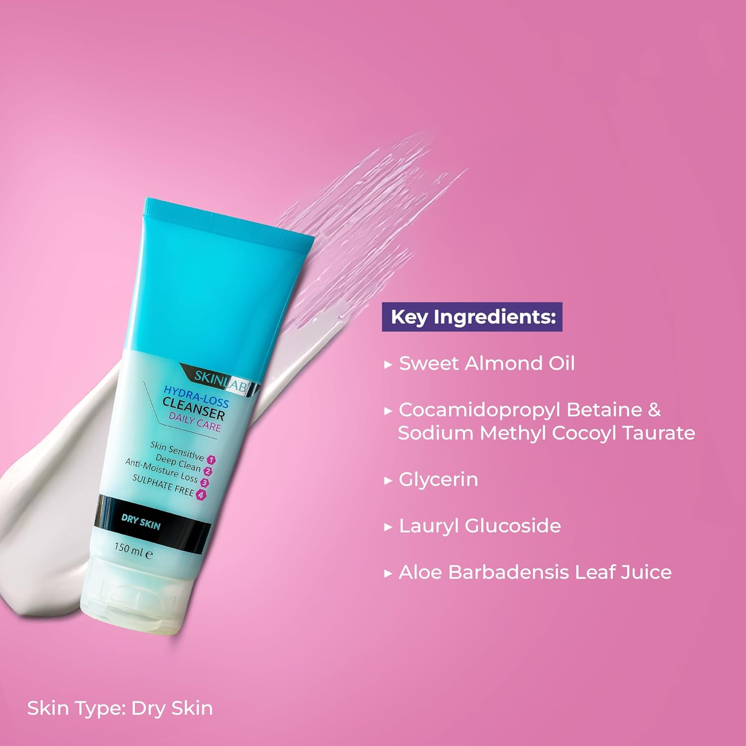 SKINLAB Hydra Loss Cleanser Daily Care for Dry, Sensitive Skin | Ultra-gentle, fragrance-free face cleanser with Lauryl Glucoside and Glycerin | 200ml