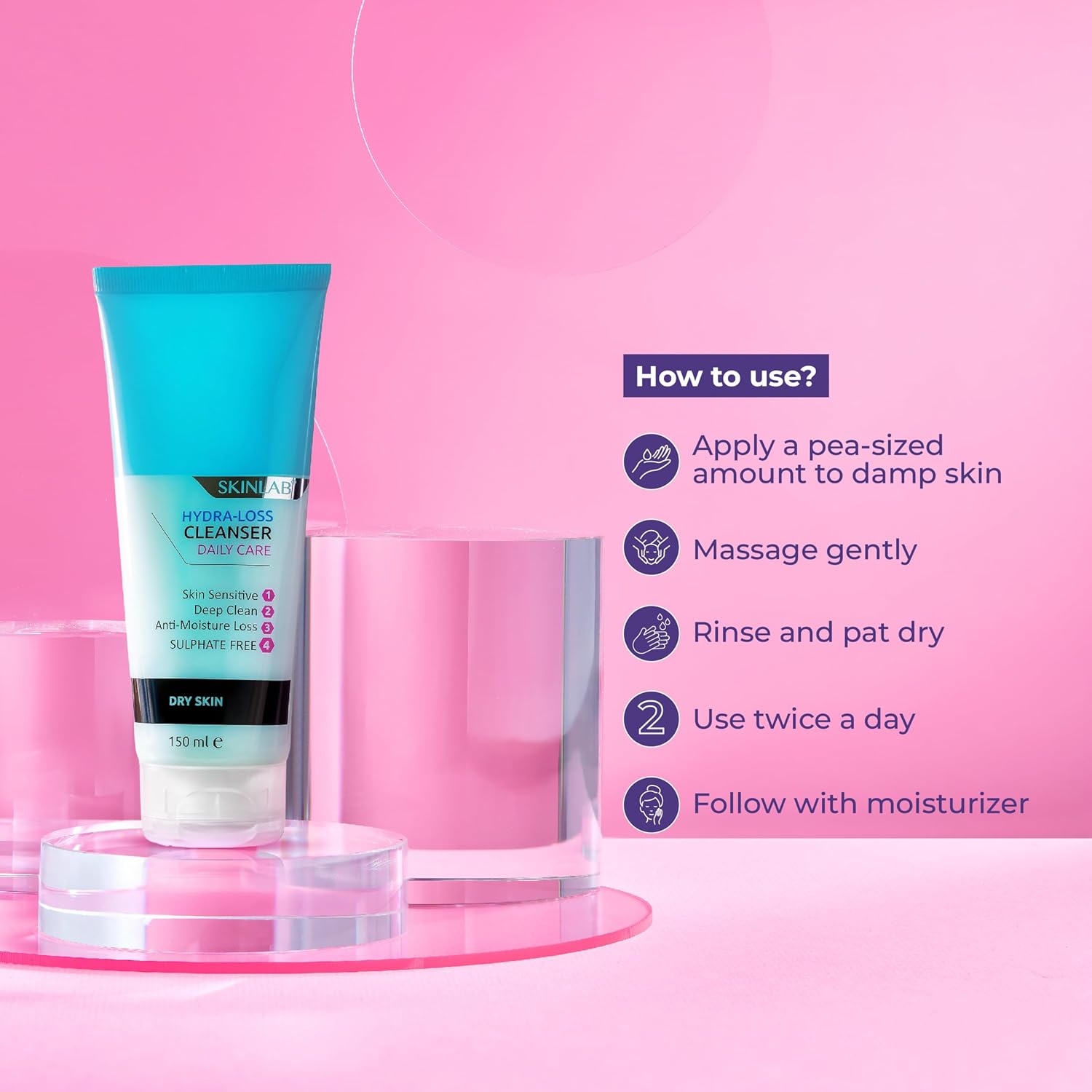 How to Use: Apply a pea-sized amount of Skinlab Hydra-Loss Cleanser to damp skin. Gently massage your face in circular motions, avoiding the eye area. Rinse thoroughly with lukewarm water and pat your face dry. Use it as a face wash for your dry skin both morning and evening and make it a part of your daily skincare routine. For optimal results, follow up with a gentle moisturizer suitable for dry skin.