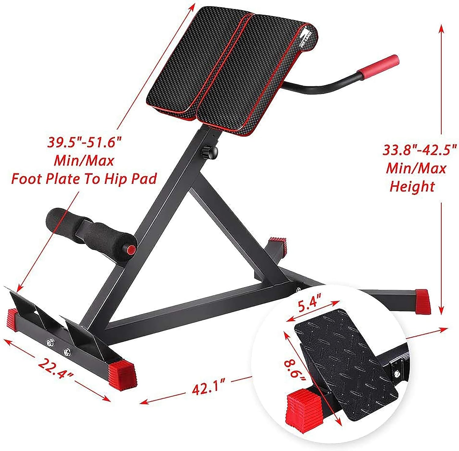 SKY LAND Adjustable Height Roman Chair Ab/Back Bench – Multi-Function Strength Training Workout Bench for Home Gym, EM-1850, Black/Red