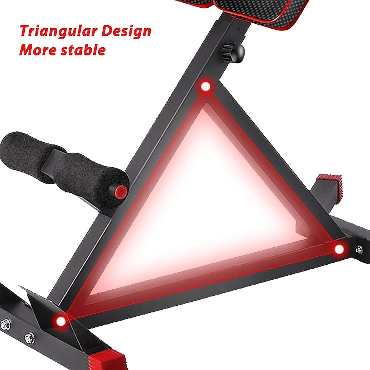 Adjustable for Intensity: Quickly adjust the bench angle to increase or decrease workout intensity, making it easy to progress as your strength improves.Comfort and Stability: The triangular design ensures stability, giving you confidence in every move, while the cushioned components enhance comfort during longer sessions.Build Strength, Burn Calories: From ripped abs to a powerful back, this bench helps you burn calories and build strength across your entire body.