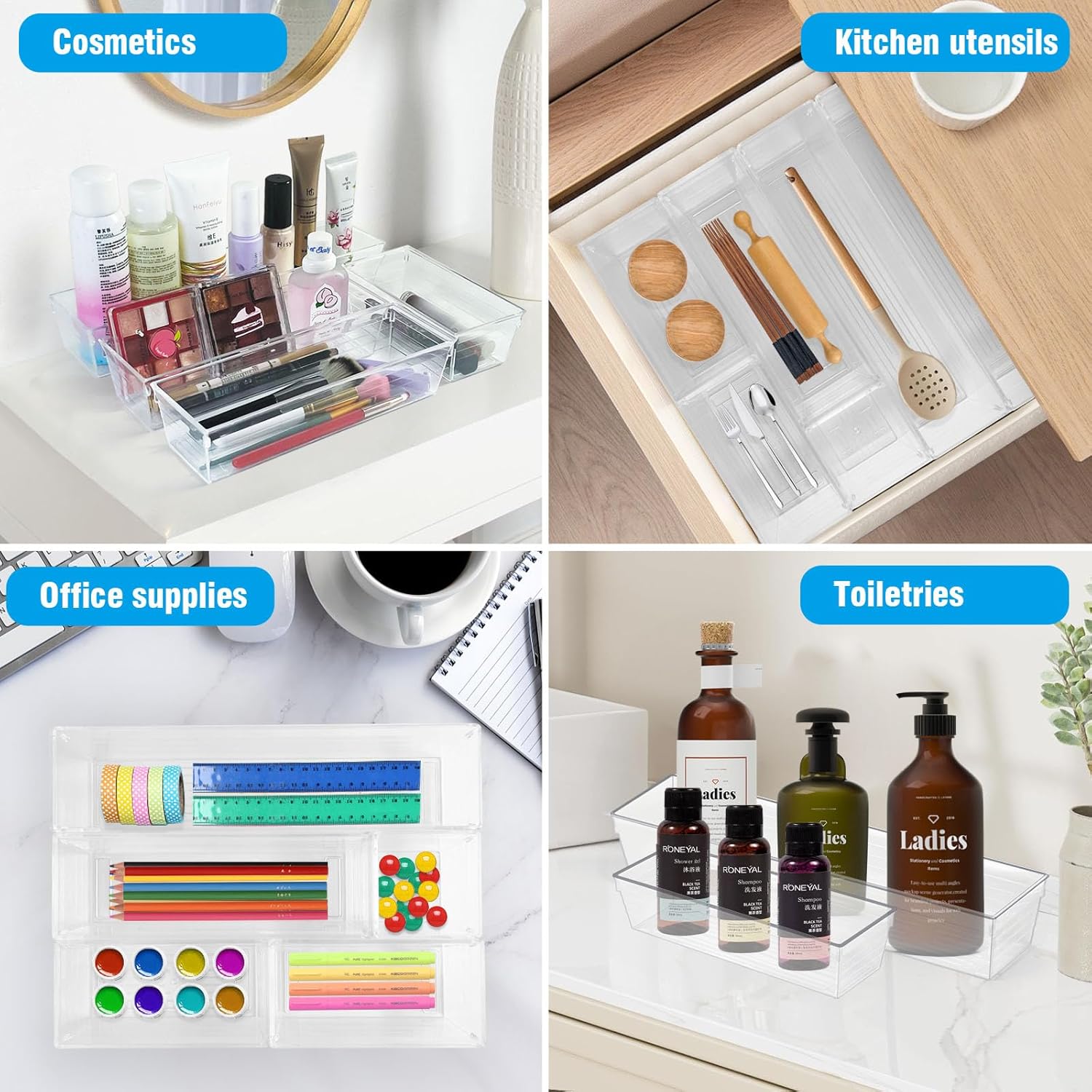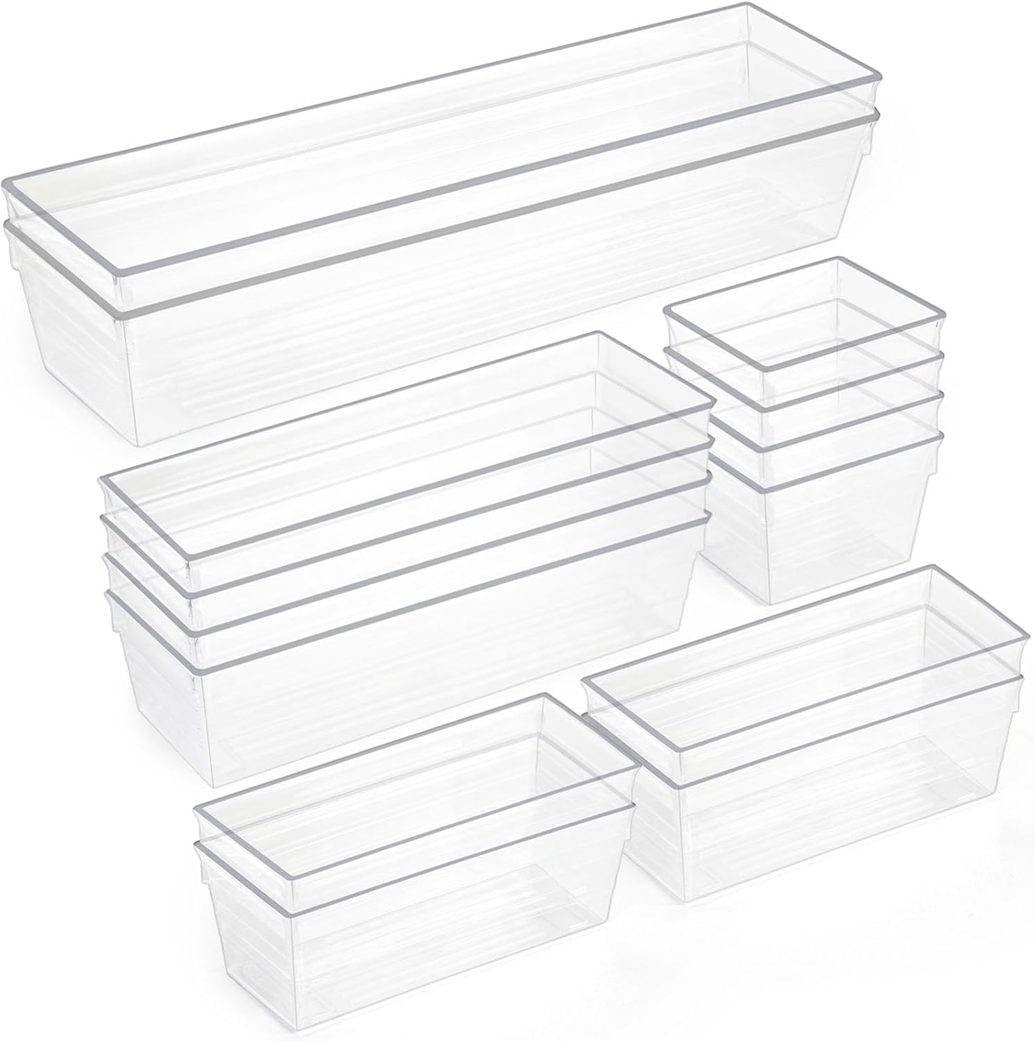 SKY-TOUCH 14pcs Clear Plastic Drawer Organizers