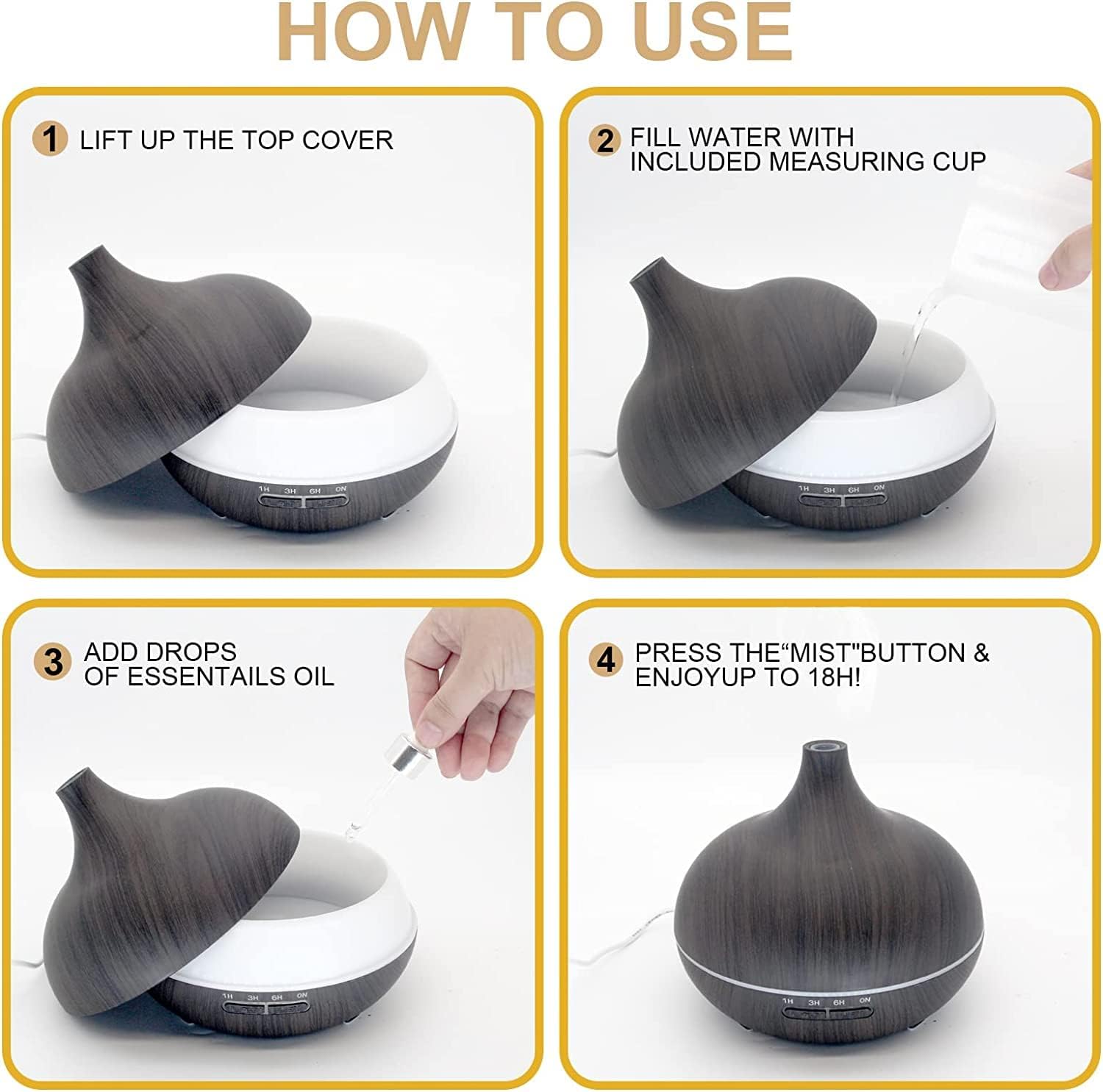 PERFECT GIFTS: The aroma diffuser features super modern wood grain, like a decorative piece. It is good choice to use this lovely diffuser as gifts to your friends and families, lovers.