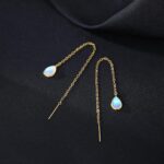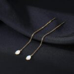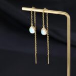 SLUYNZ 925 Sterling Silver Long Threader Earrings Chain for Women Droplet Tassel Earrings Moonstone