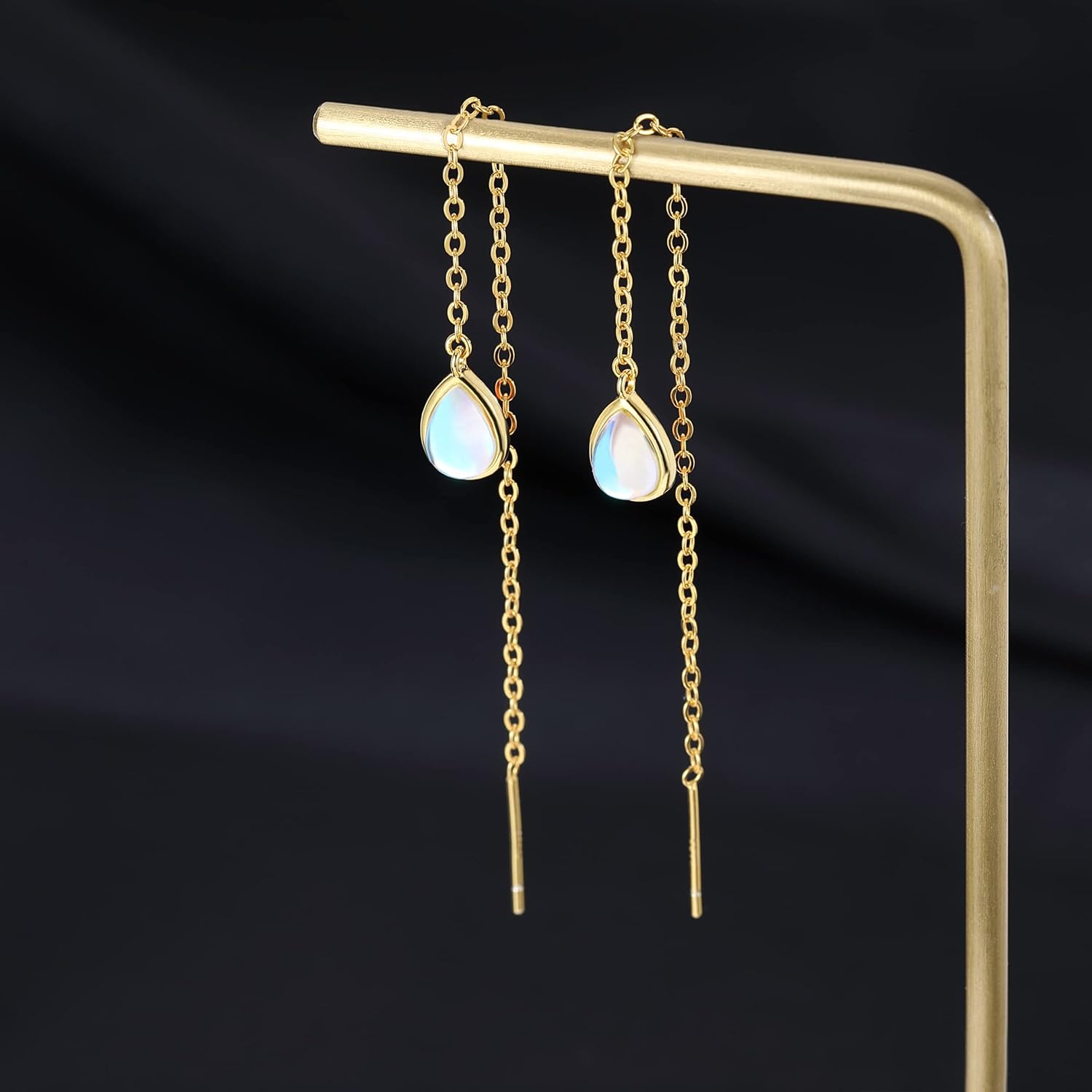 SLUYNZ 925 Sterling Silver Long Threader Earrings Chain for Women Droplet Tassel Earrings Moonstone