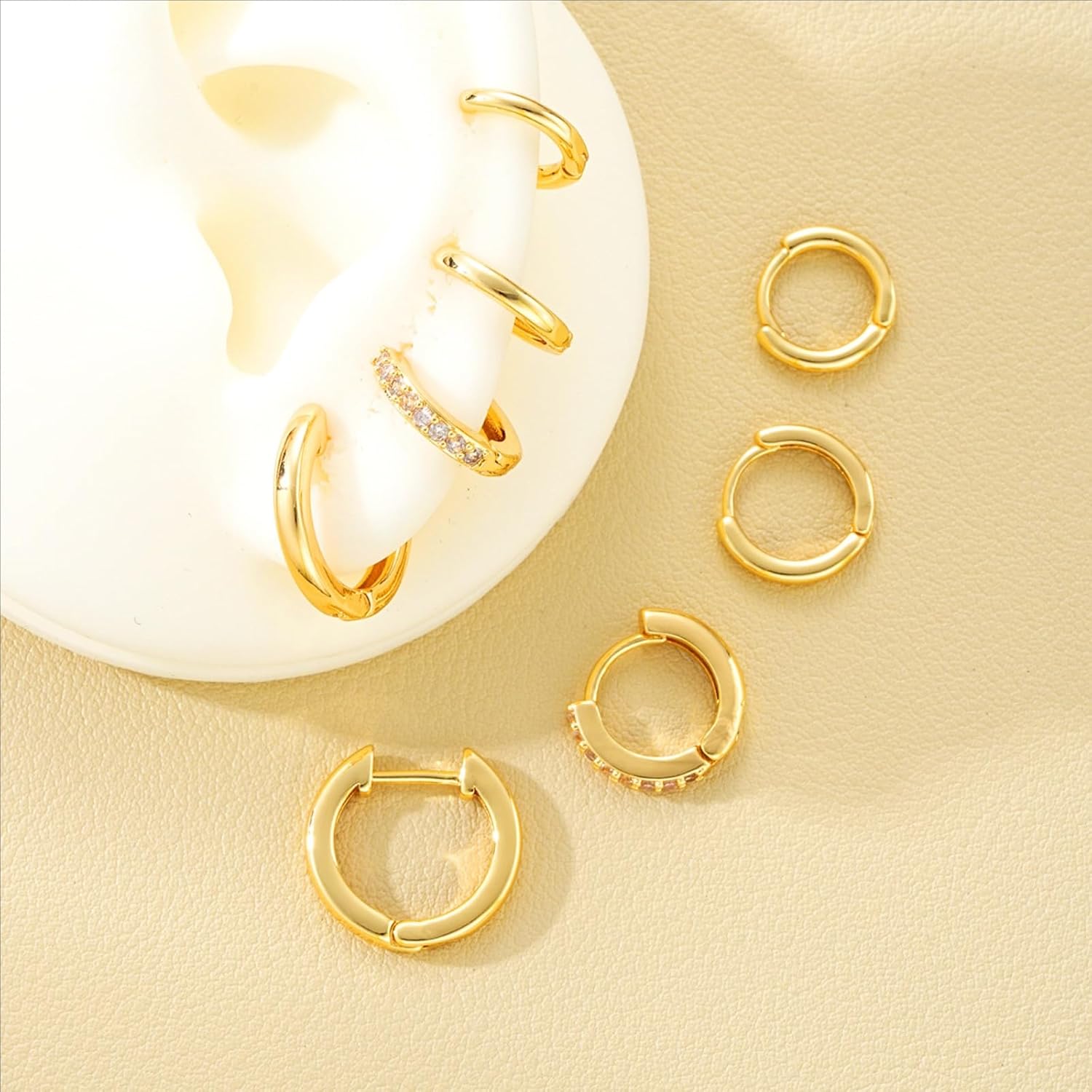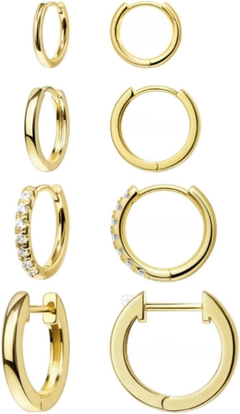 Small Gold Hoop Earrings Set for Women Men – Hypoallergenic 14K Gold Plated Stack Cartilage Earring, Earrings Sets for Multiple Piercing Lightweight Mini Thin Cute Dainty Trendy Clip On 4 Pack