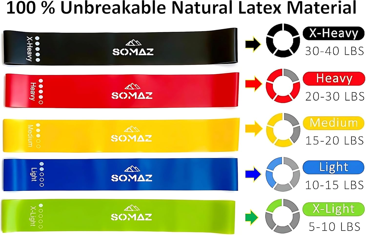 SOMAZ Resistance Unbreakable 100 % Natural Latex Exercise Bands