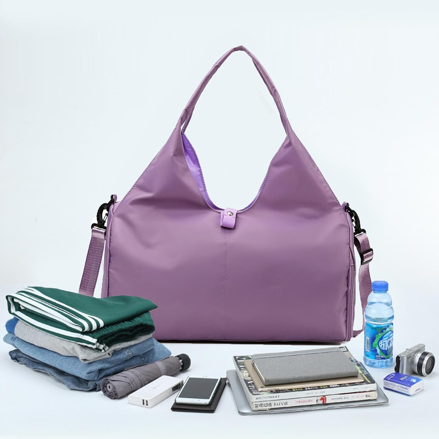 【Wet and Dry Compartment】This yoga bag has a roomy main compartment and a zippered wet pocket to separate your dry cleaning items from toiletries and wet and dirty clothes. Besides, this women’s gym bag we additionally provide you with a small storage bag, which can also hold chargers, cosmetics, wallets, keys, earphones and other small items.