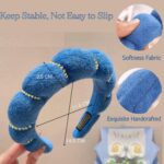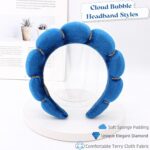 Spa Headband & Wristband Set for Women Girls Skincare Companion with Soft Terry Cloth and Bubble Headbands for Face Washing, Makeup & Skin Treatments-Non-Slip, Cute & Puffy headwear Accessories-Blue