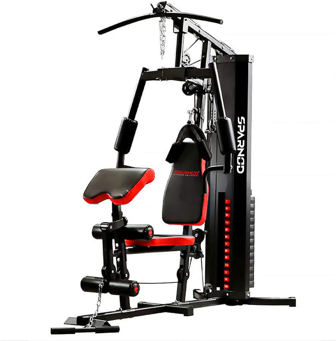Sparnod Fitness Multifunctional Home Gym Station: Heavy-Duty Steel Construction, 20+ Exercises for a Full Body Workout, Adjustable Seat & Back Cushion, Weight Stack, Smooth Operation Free Installation