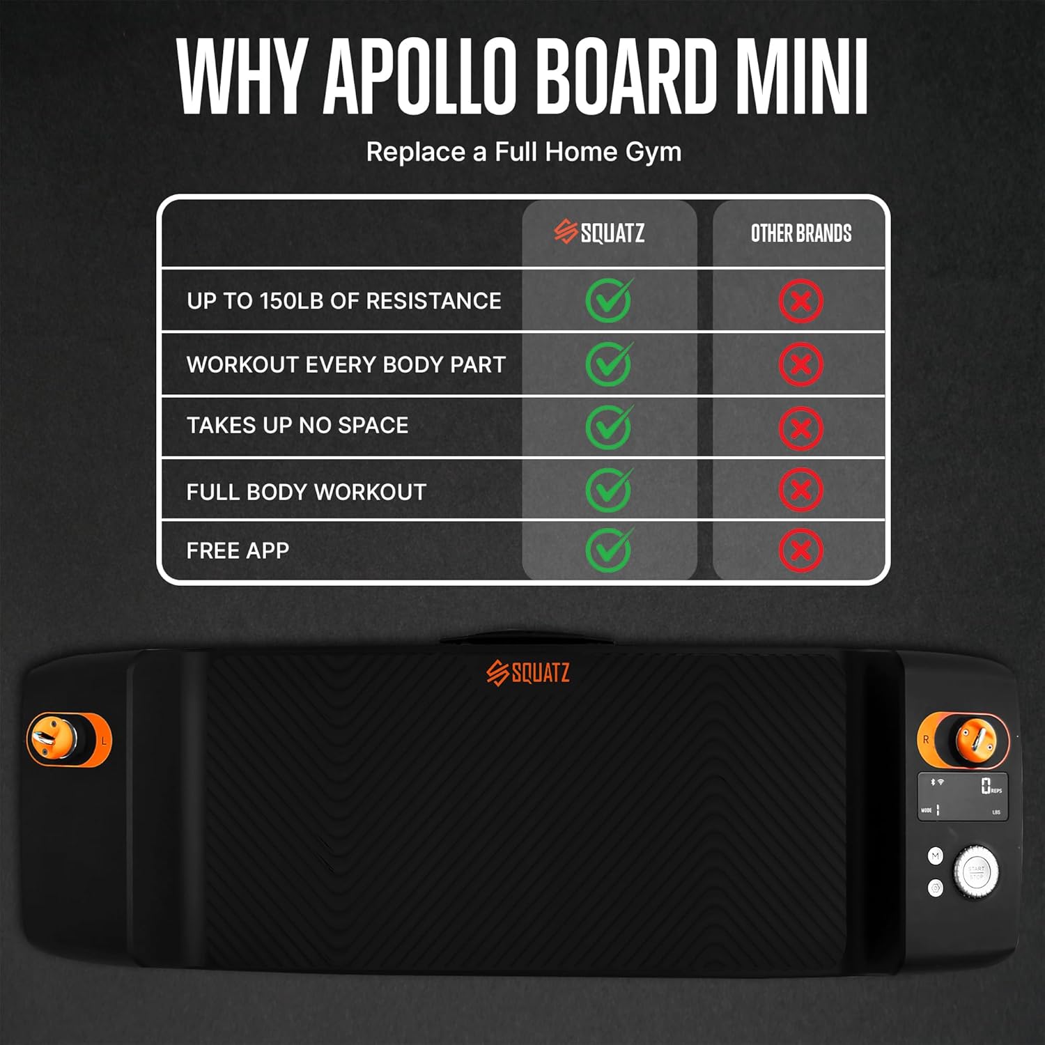 SQUATZ Apollo Board Mini: 150lb Resistance Smart Cable Machine, Functional Trainer for Full Body Workouts, Full Body Strength, Digital Home Gym Equipment with Free App includes Accessories