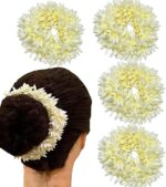 S,S Store Indian Jasmine Hair Flowers – Perfect Gajra for Women’s Hair Accessories White Gajra Artificial Flower Jewelry Handmade For Women (Set of 4 Pcs)