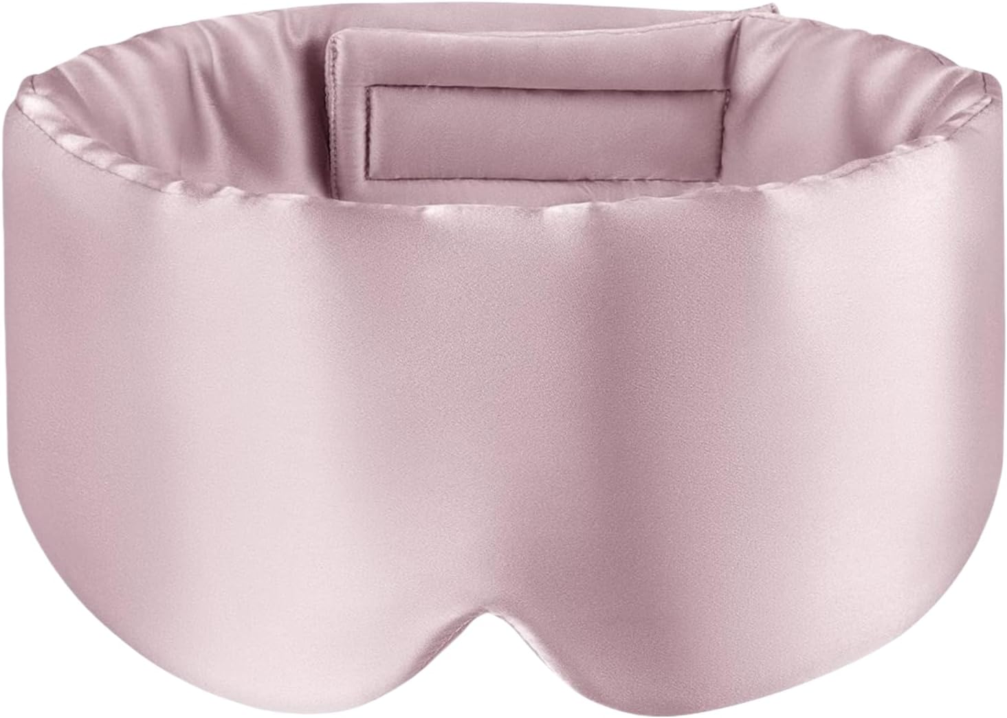 SSKHE Silk Sleep Mask for Women Men, Satin Blackout Eye Night Mask Headband with Kids for Home Sleep Travel Shift Work Nap Yoga Snooze Soundproof Cooling for Airplane Essentials (Pink, One Size)