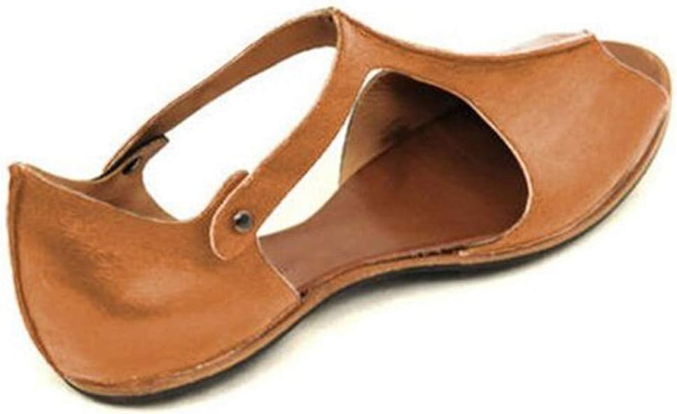 Starryflashing_Women Sandals Women Open Toe Ankle Strap â € Ladies Solid Flats Fish Mouth Beach Shoes One-Word Buckle Belt Roman