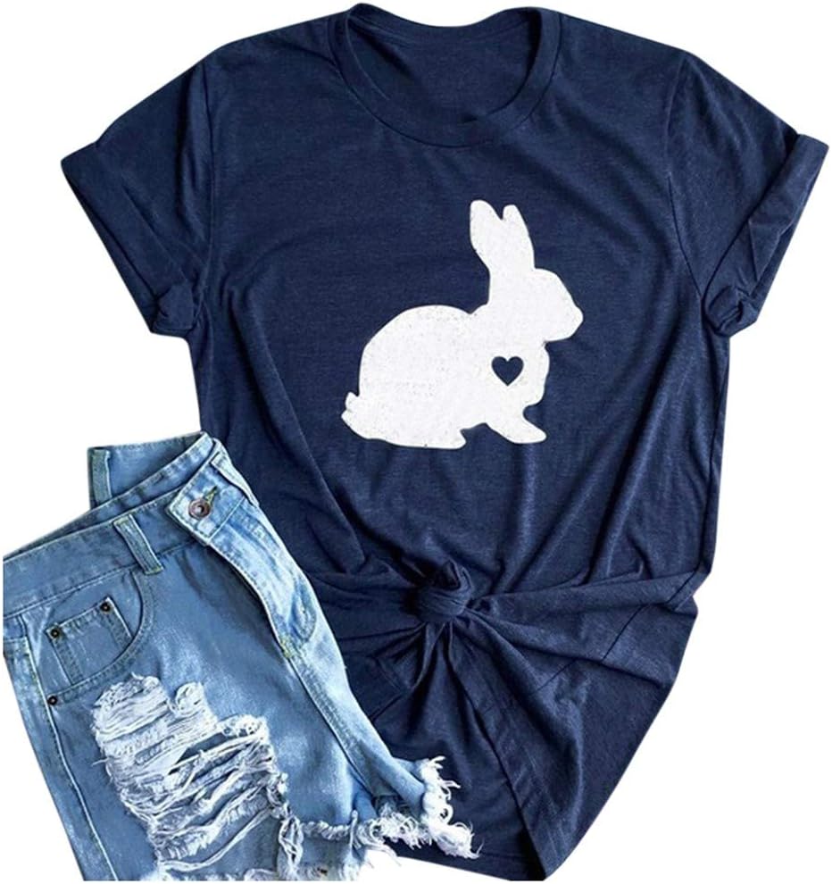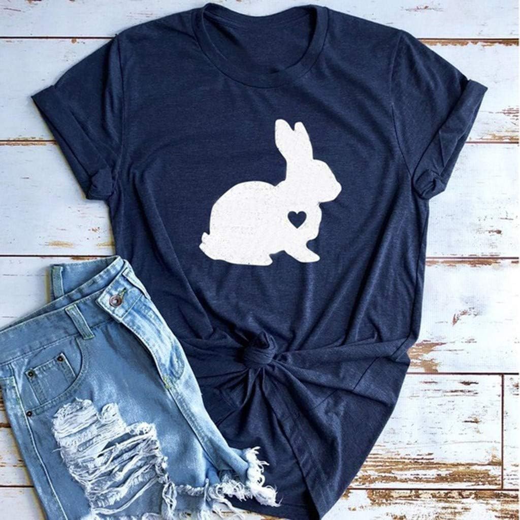 Starryflashing_Women Tops Women Cartoon Prtinted T-shirt Ladies Easter O-neck Short Sleeve Blouse Pullover Top