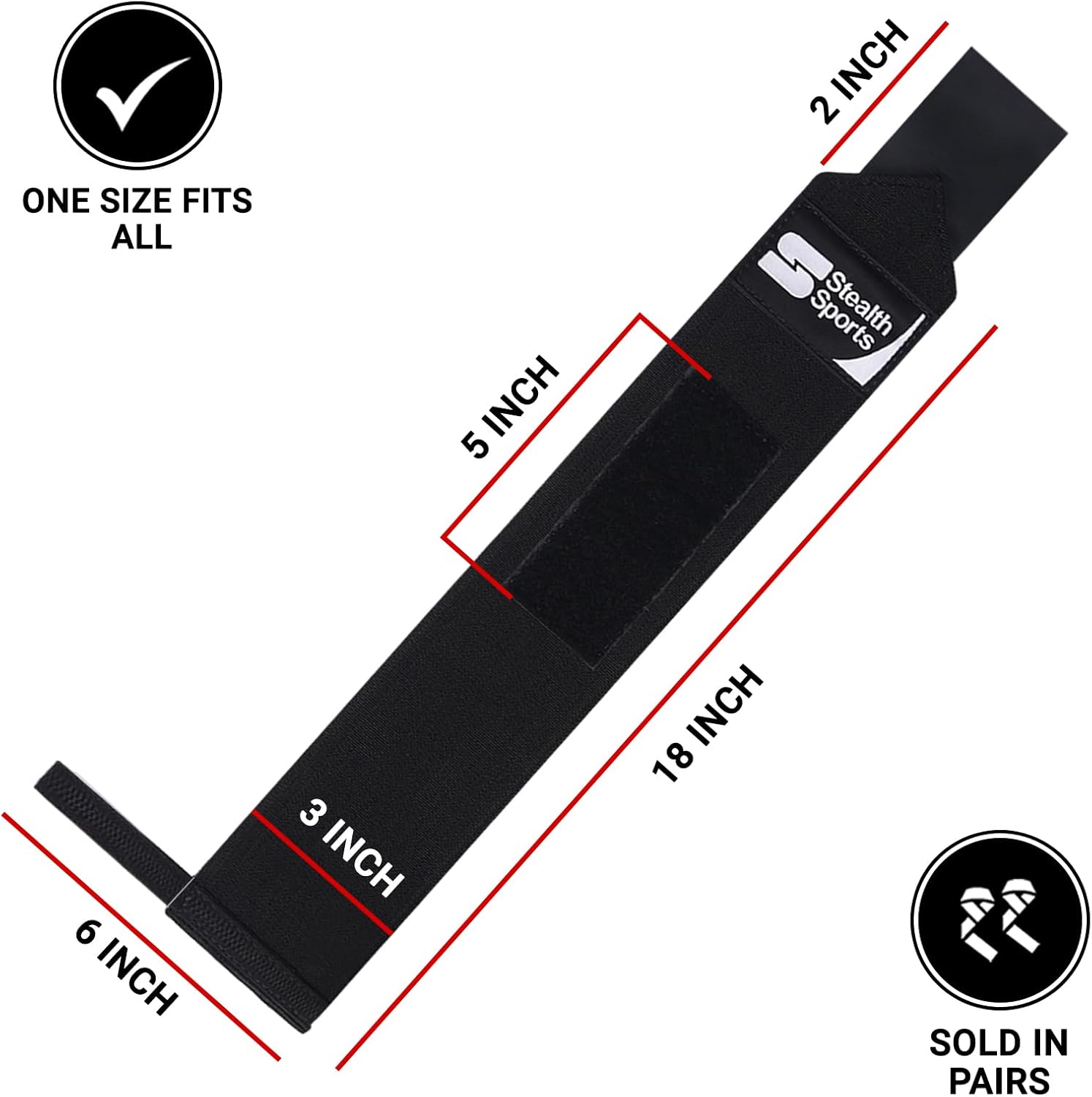 Stealth Sports Weight Lifting Wrist Wraps – 18” Cotton Wrist Support with Thumb Loop – Gym Straps for Workout Powerlifting Weightlifting Fitness Strength Training, Stiff Wrist Straps