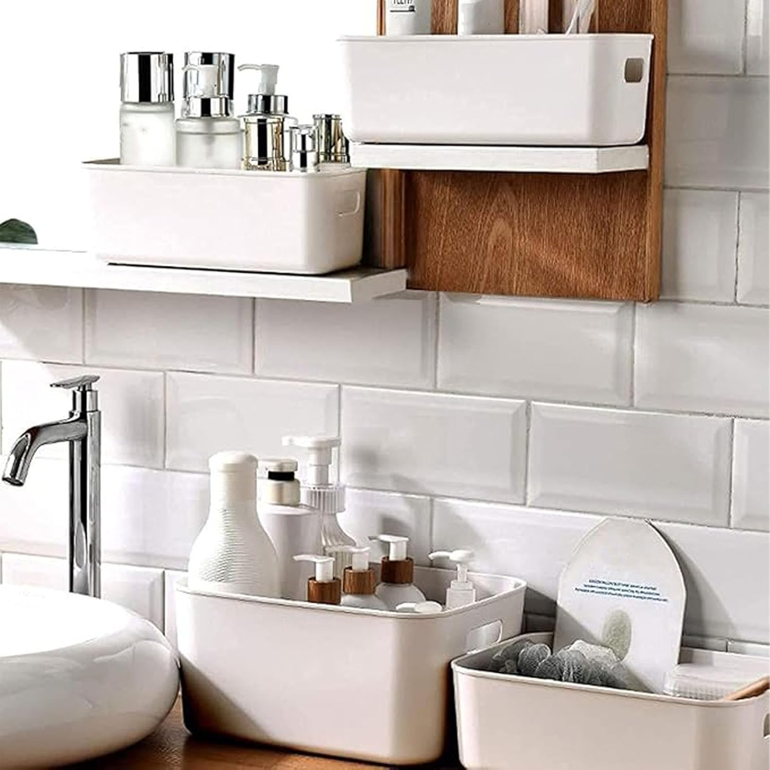 Convenient and Suitable Size: The package includes 6 white plastic storage baskets, measuring approximately 12 x 8.1 x 4.7 inches/ 30.5 x 20.5 x 12cm,they keep bathroom and kitchen clutter in check, perfect for busy families and professional organizers.Great help to organize your lotions, cleaning tools, towels even toys.the plastic storage bin is ideal for storing small to medium sized items, making them convenient for use in different areas of your home or office