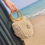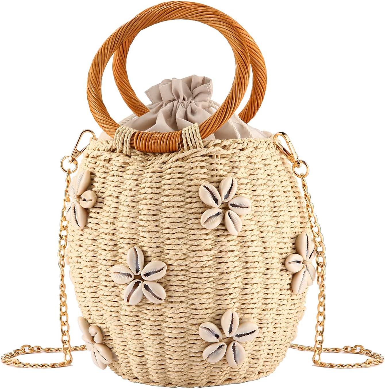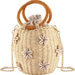 Stylish Rattan Tote Bag – Summer Beach Drawstring Straw Handbag – Woven Bucket Purse with Diamond Pattern for Women (Natural & Chic)