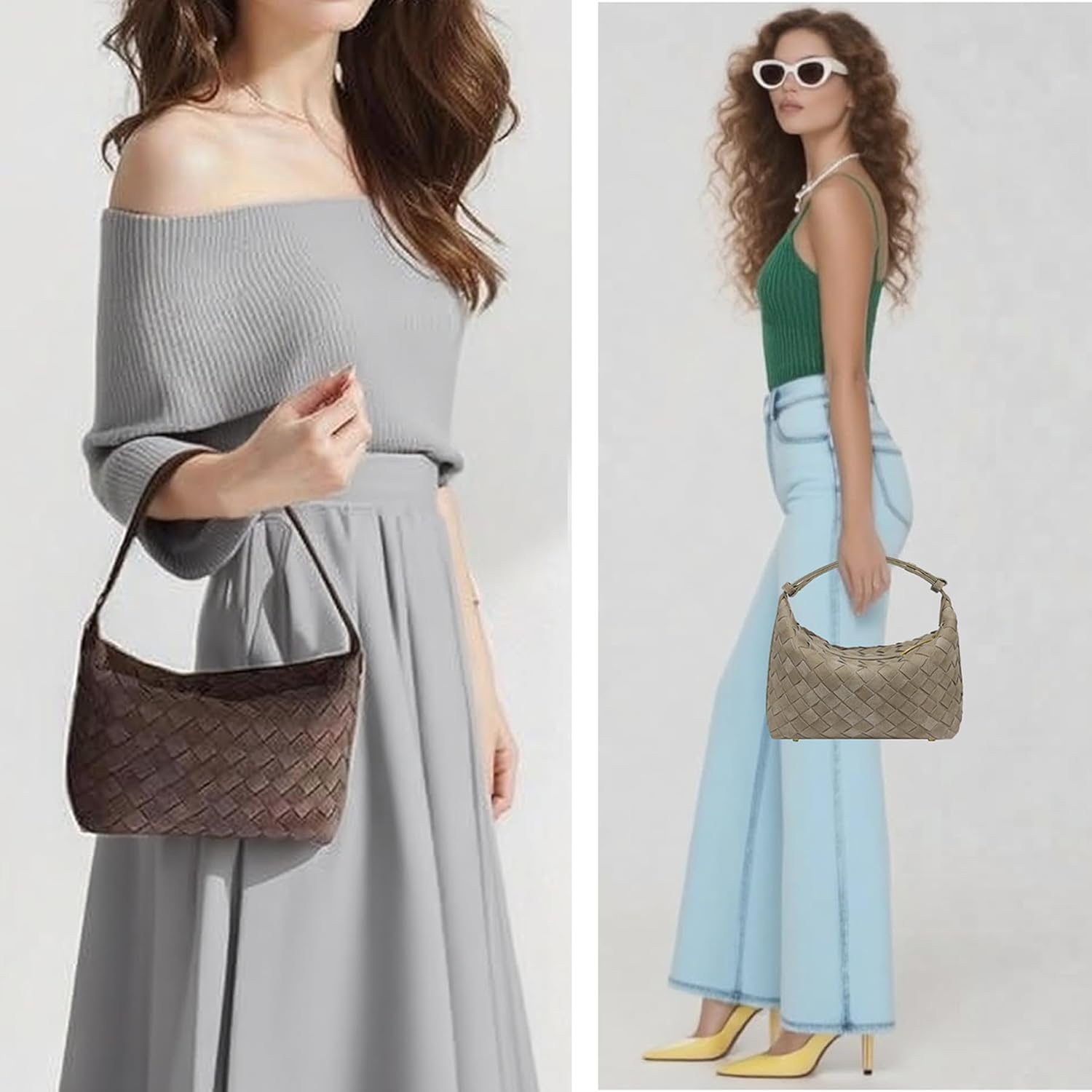 Suede Leather Handbag for Women-Small Clutch Bag Suede Handbag- Leather Woven Bag-Underarm Purse-Top-Handle Handbag