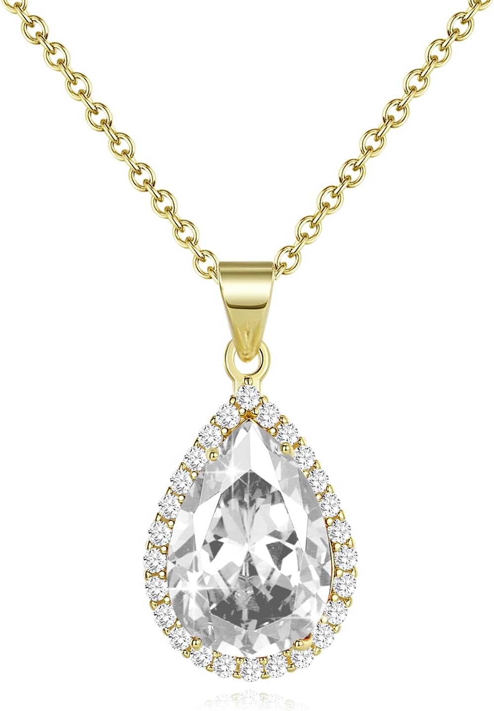 Sumonyo Diamond Teardrop Pendant Necklaces for Women Crystals Birthstone Costume Jewelry Gifts for WomenGold Plated 17.92 + 1.97 inch Chain
