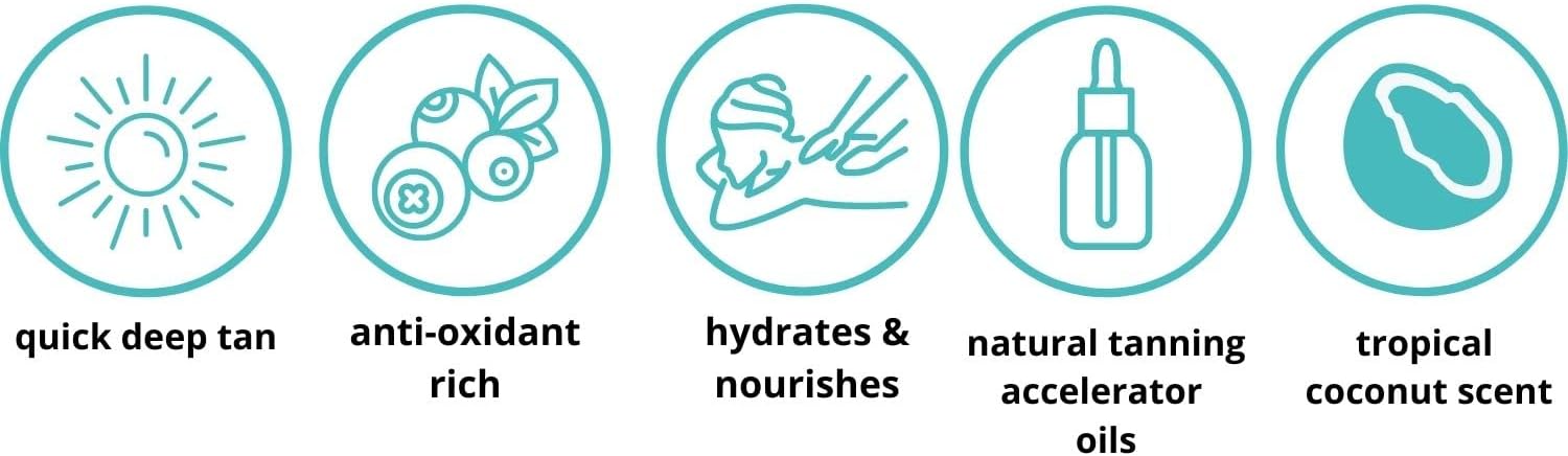 Full of vitamin E, TANNING ACCELERATORS, and natural SPF the formula includes Raspberry Seed, Coconut, Carrot, Jojoba, Wheat Germ oils and antioxidants to nourish replenish and hydrate thirsty skin.
