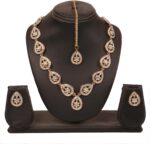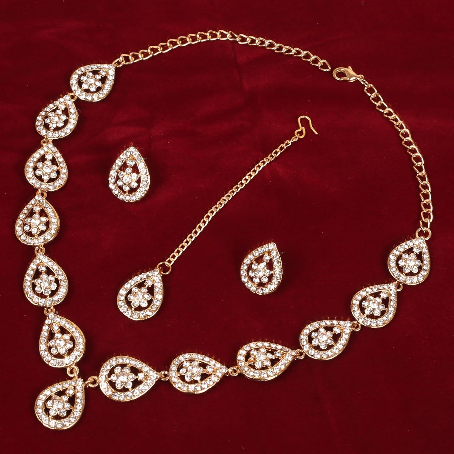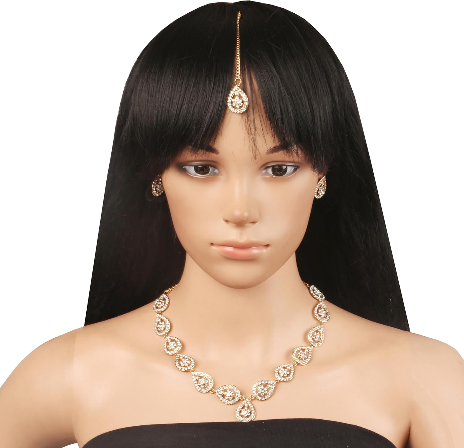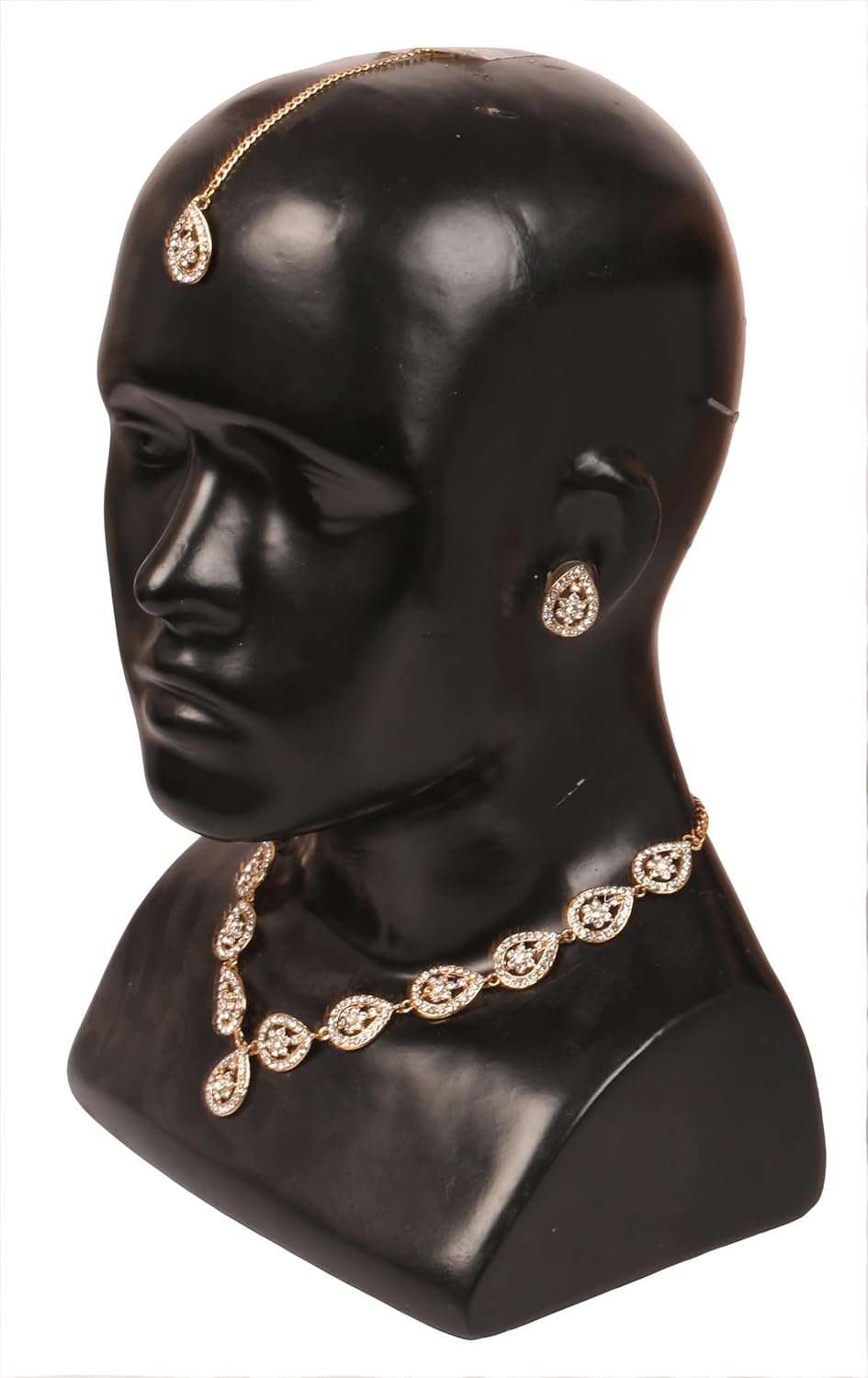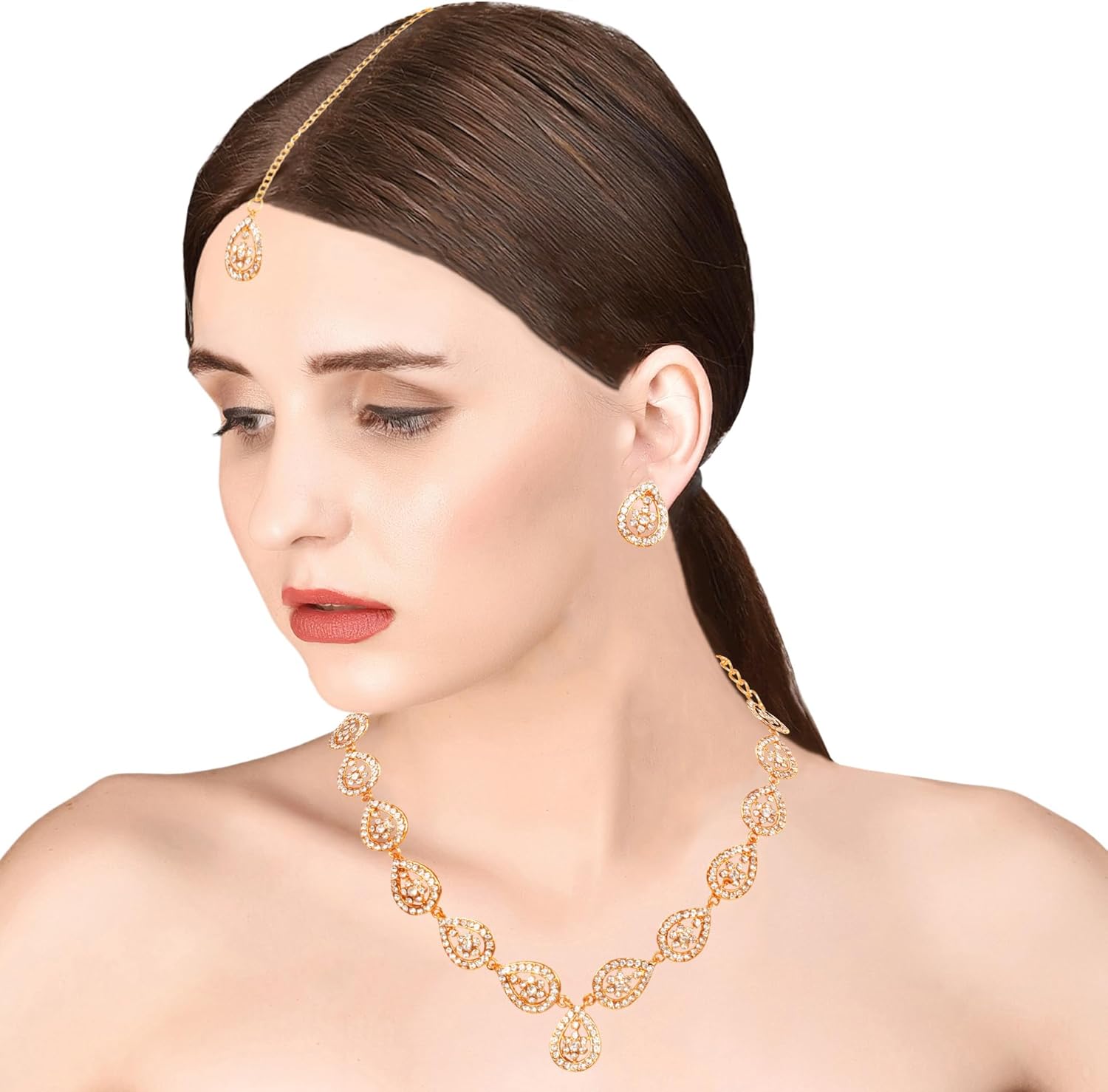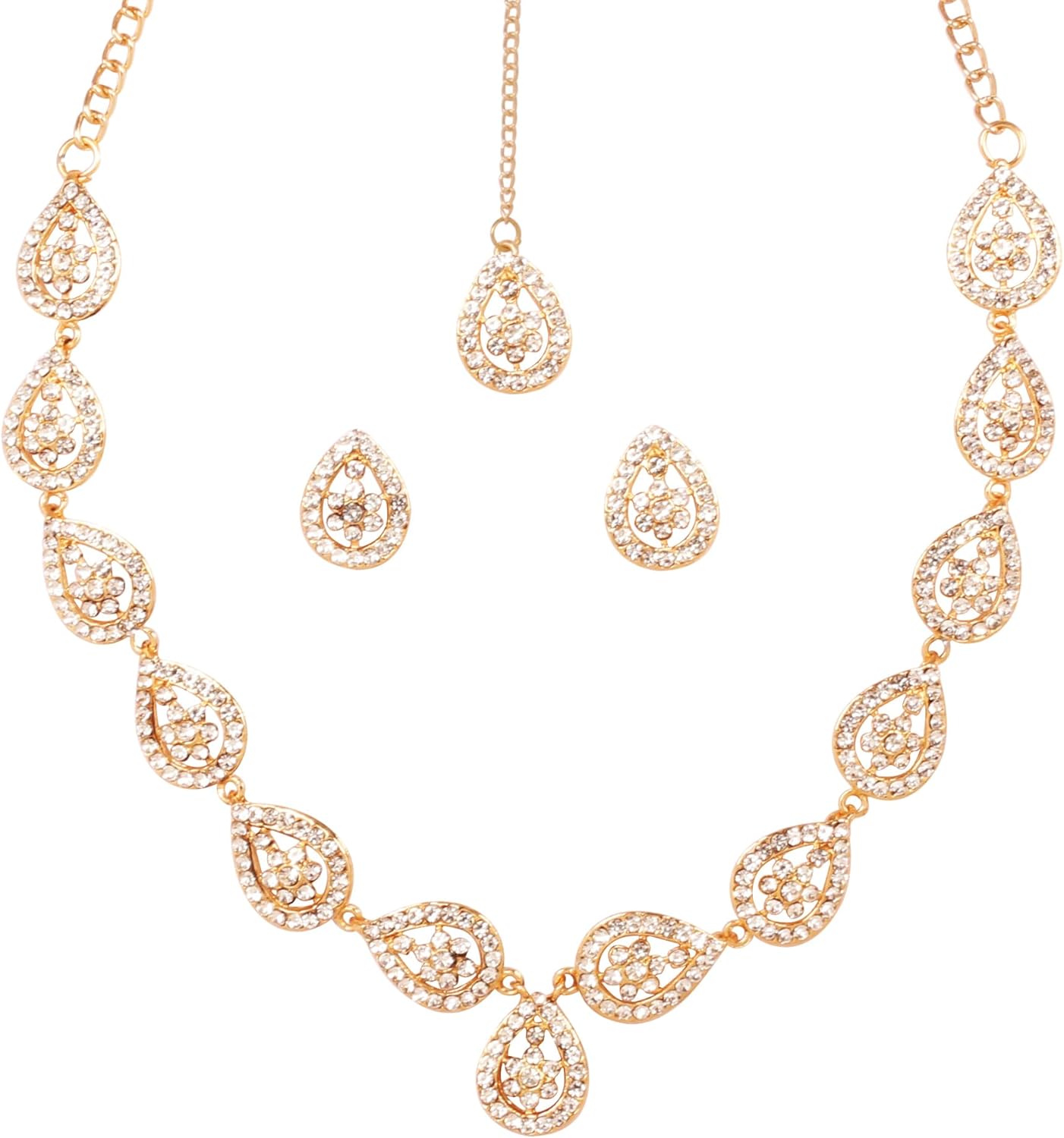 Sunsoul By Touchstone Indian Bollywood Exclusive Handcrafted Traditional Pear Shape Workmanship Rhinestone Elegant Designer Jewelry Necklace Mangtika Set In Antique Gold Tone For Women.