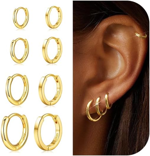 Supneer 8 Pairs Gold Earrings Small Gold Hoop Earrings for Women,18K Real Gold Plated Gold Hoops Huggie Cartilage Earrings Piercings Jewelry Hypoallergenic Lightweight 6mm/8mm/10mm/12mm