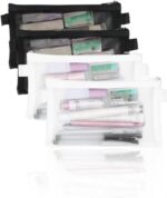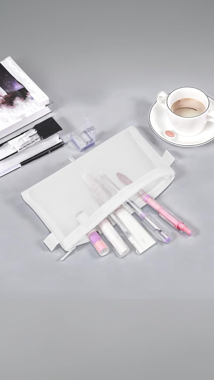 Sweet seven Clear Mesh Zipper Pencil Case Set – 4 Piece Exam Stationery Organizer for Students and Makeup Storage for Women(2 White and 2 Black)