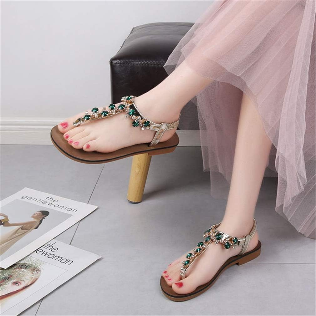 SXFJF Ladies Sandals Summer Flat Sandals Bright Diamond Clip Toe Sandals And Slippers Female Fashion Students Flat Bottom Beach Shoes Roman Shoes,Green,40