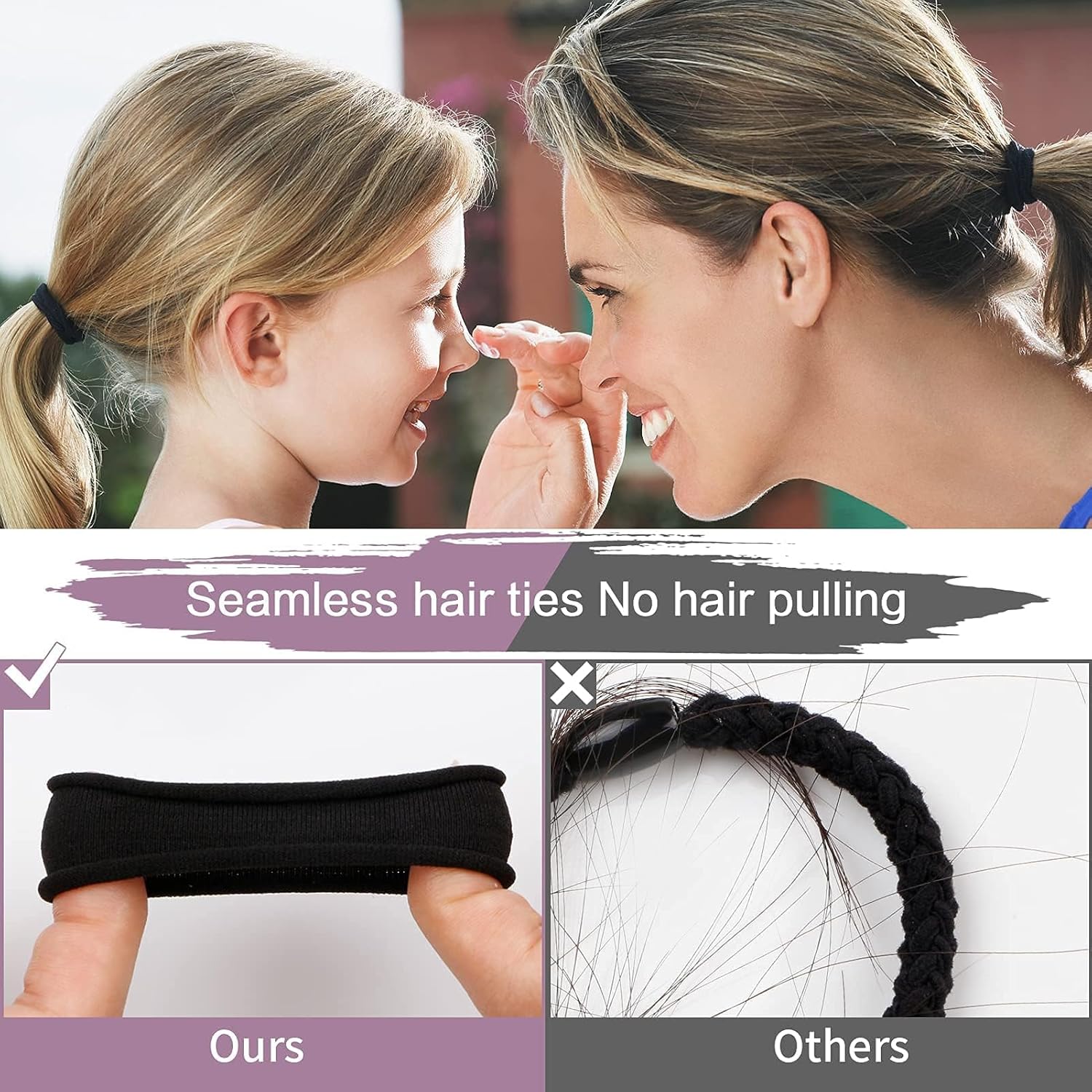 【Durable Material】 Our black hair ties made of seamless cotton, not easy to break. 100pcs hair bands sufficient quantity to use for a long time.