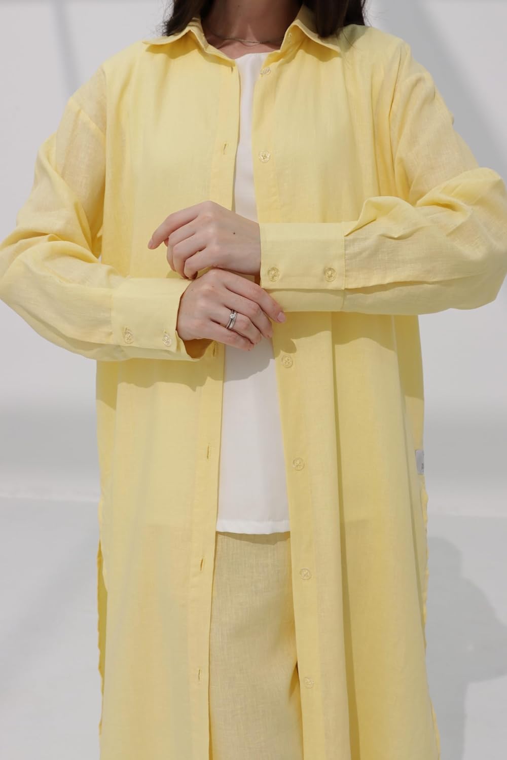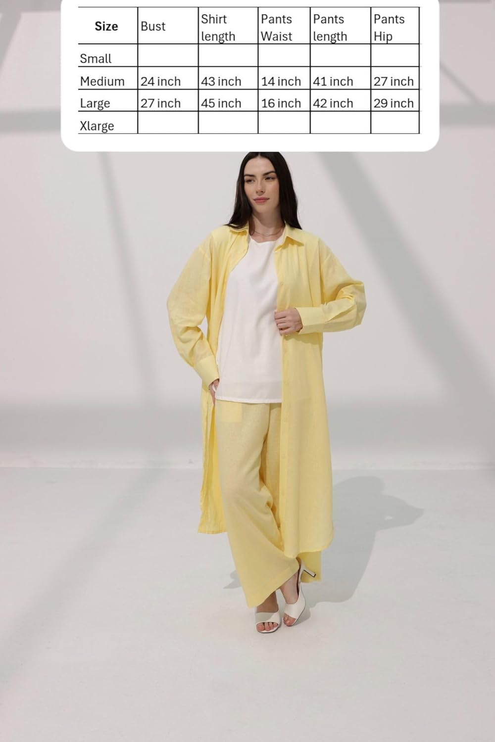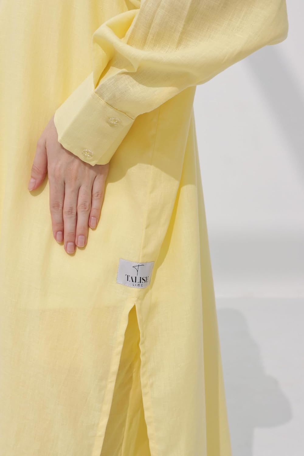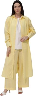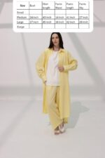 Step into the season with ease in the Taliseline Summer Linen Suit in a fresh light yellow hue. Designed for breathable comfort, this two-piece set features a soft, open-front jacket with button details and loose-fitting pants, offering a perfect balance between casual elegance and all-day wearability.