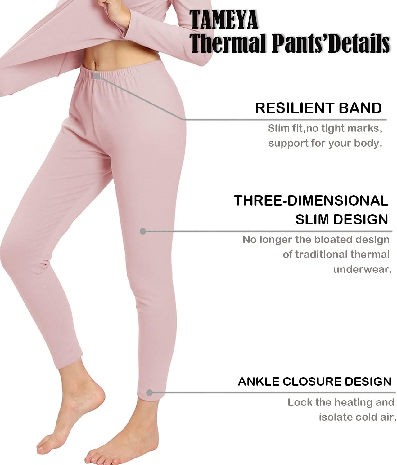TAMEYA Ultra Soft Thermal Underwear for Women, Long Johns 2 Set with Fleece Lined,Cold Weather Base layer Warm Top & Bottom