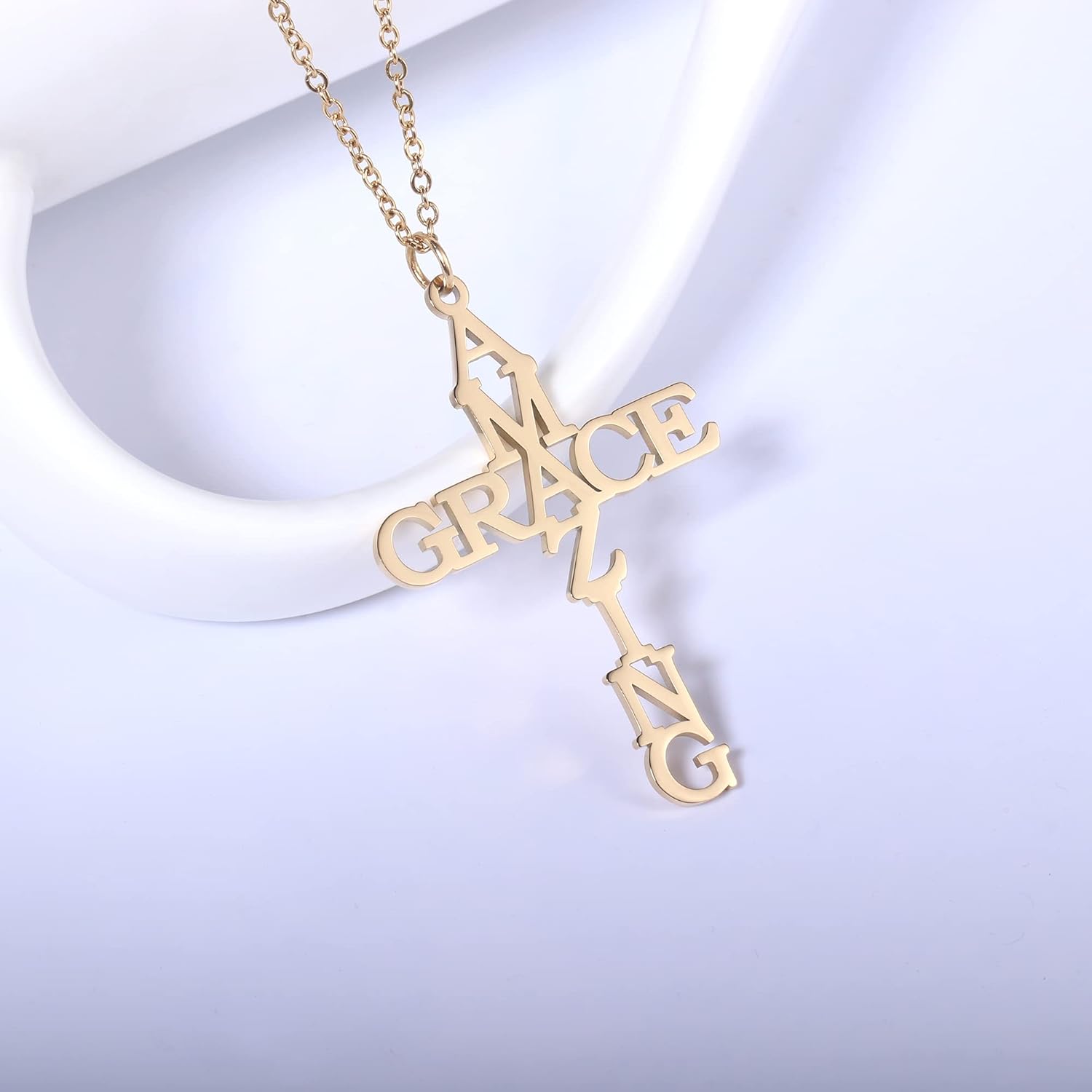 Tavuala Amazing Grace Cross Necklace for Women Religious Jewelry Necklace