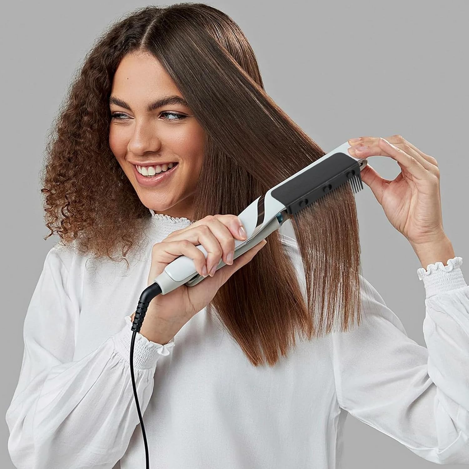 😏【Applicable Size】:The size of the hair straightening comb attachment is 9.3×3.4×3 cm/3.66×1.34×1.18 inches. With this product, you will get smooth and straight hair. It is the perfect complement to traditional hair straighteners. The comb attachment has a clever split detachable design that fits all sizes of straighteners.