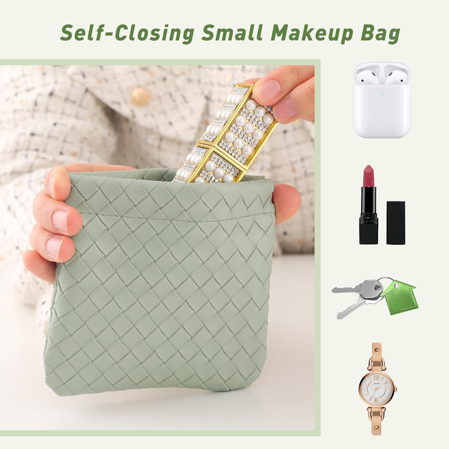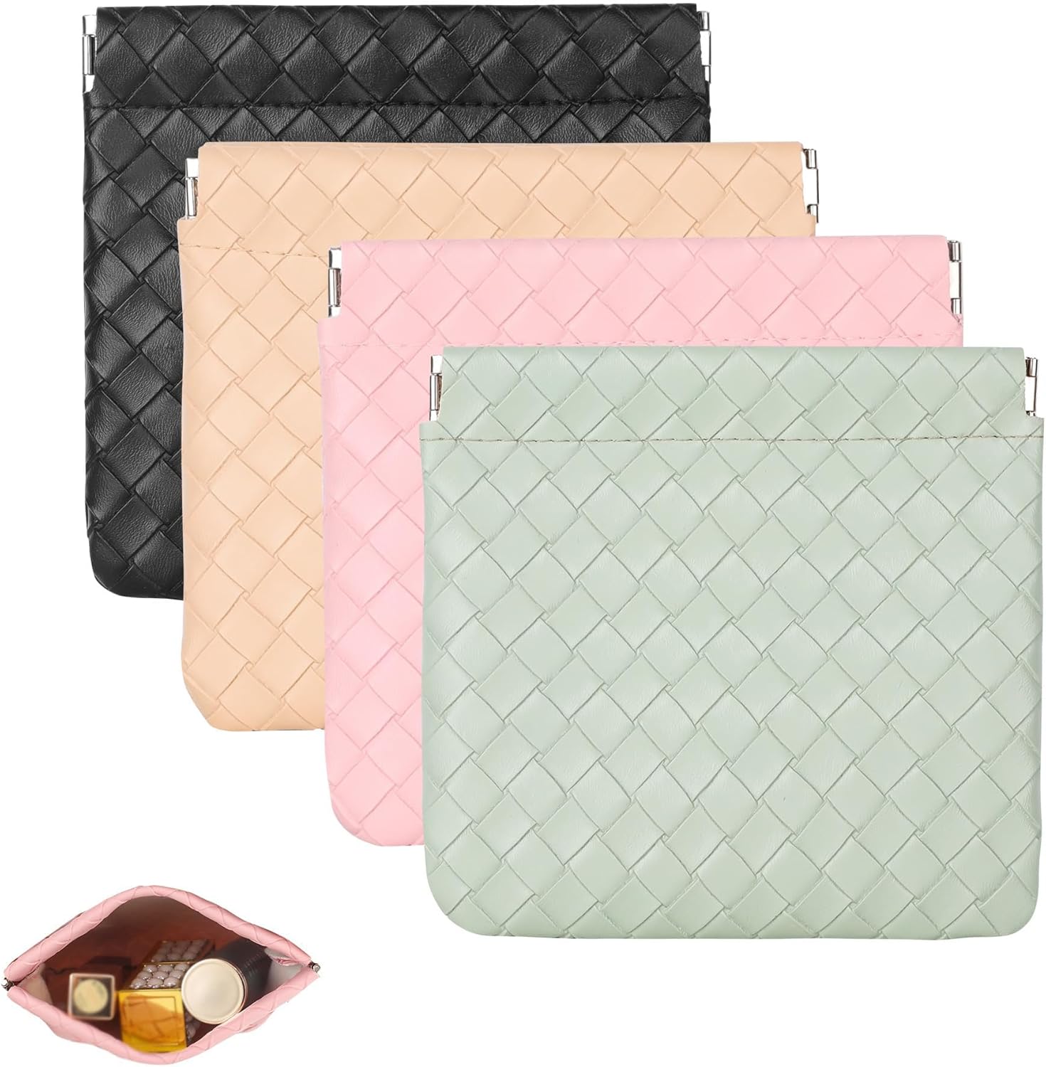 Tazweeq 4Pcs Small Makeup Bag for Purse, Mini Leather Cosmetic Bag, Portable Mini Makeup Bag, Weave Pocket Pouch, for Coin Lipstick Jewelry, Set for Women Makeup Organizer, for Travel Storage