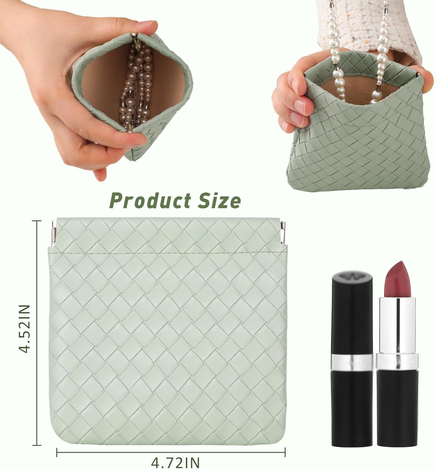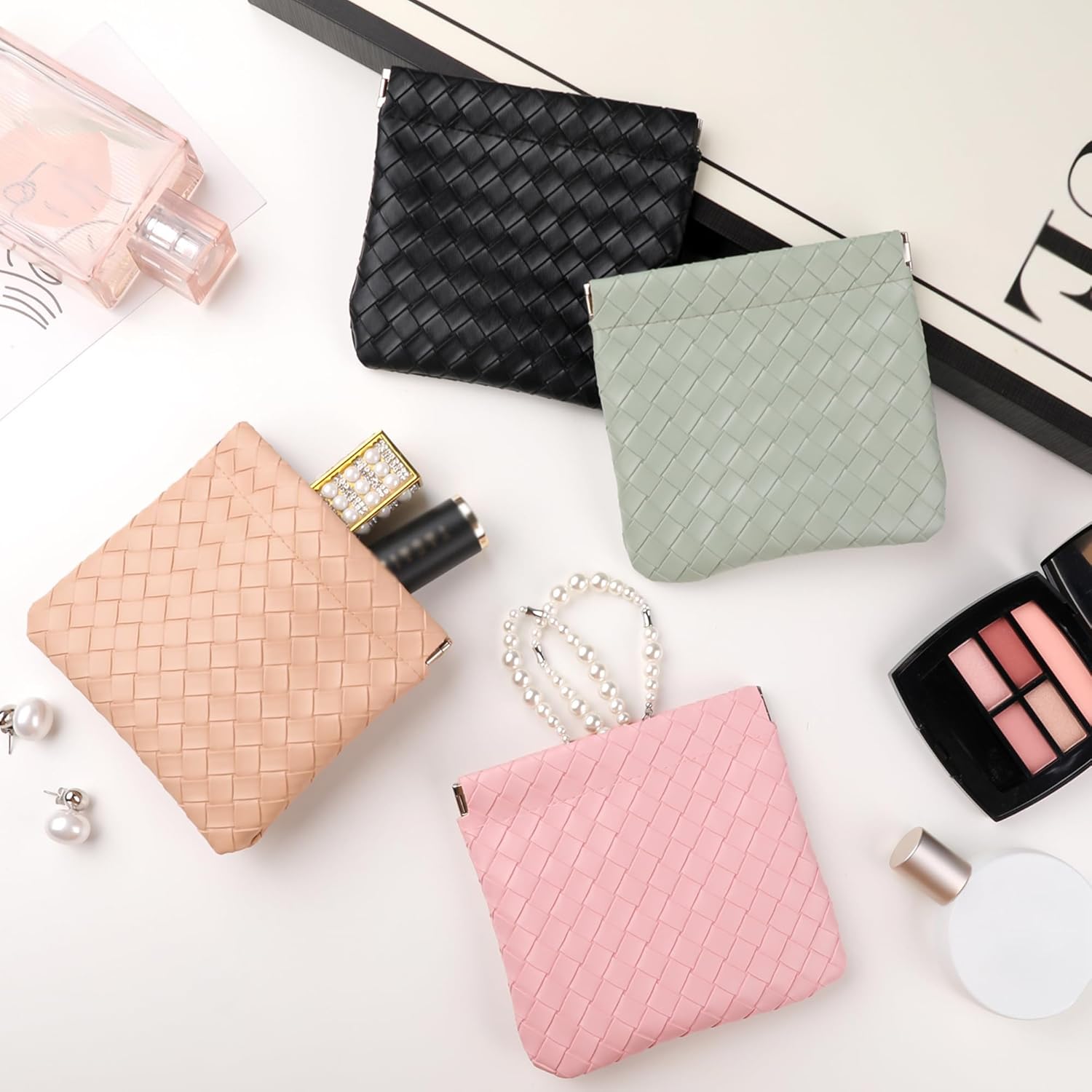 💖【Small Makeup Bag Set】:You will get 4 one-pack small makeup bags in morandie color, woven pattern pocket bag in black, pink, apricot and green. The small makeup bags are fresh and cute and ensure your small items are organized.