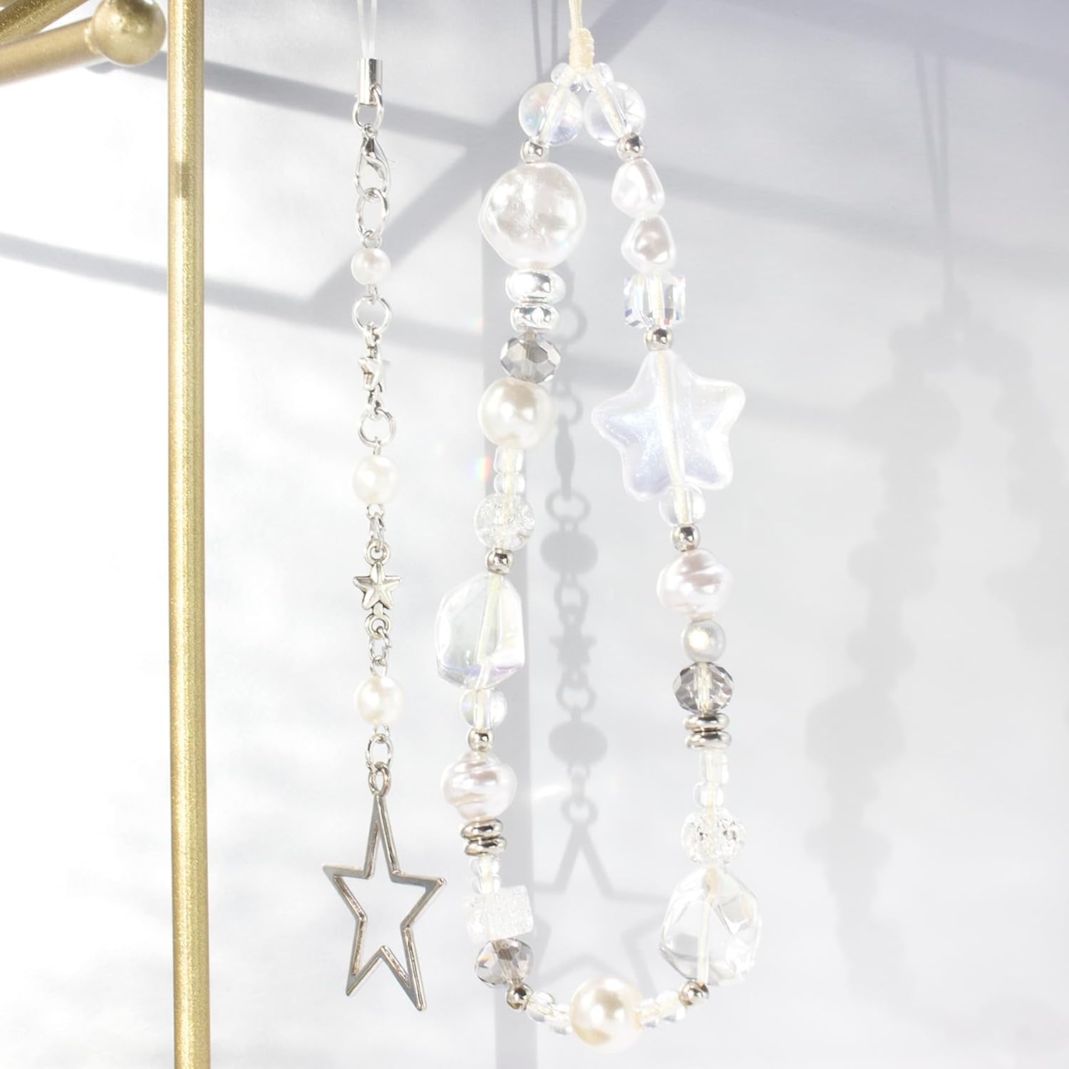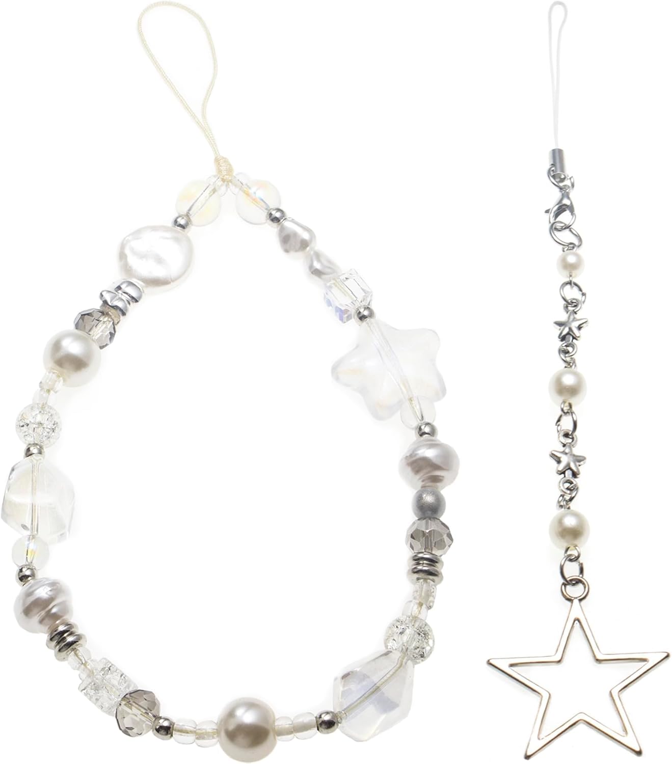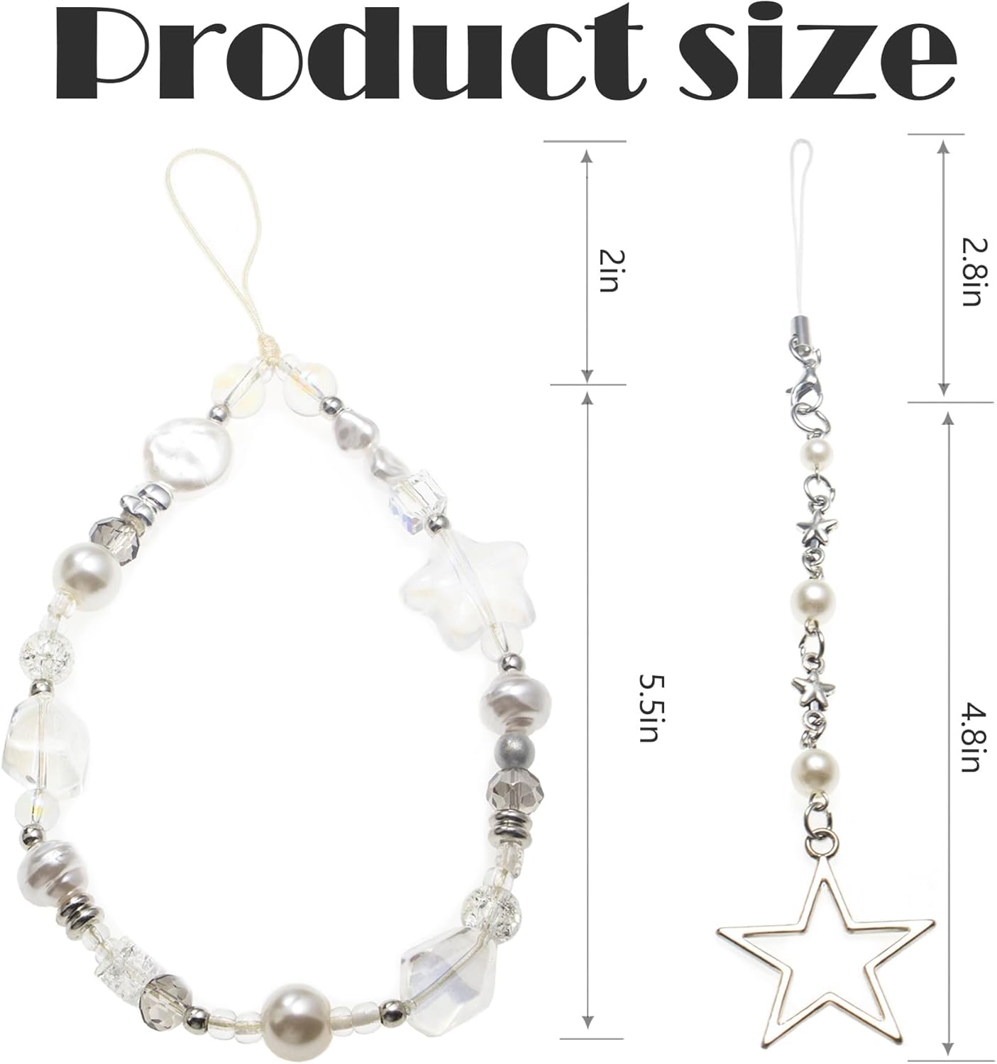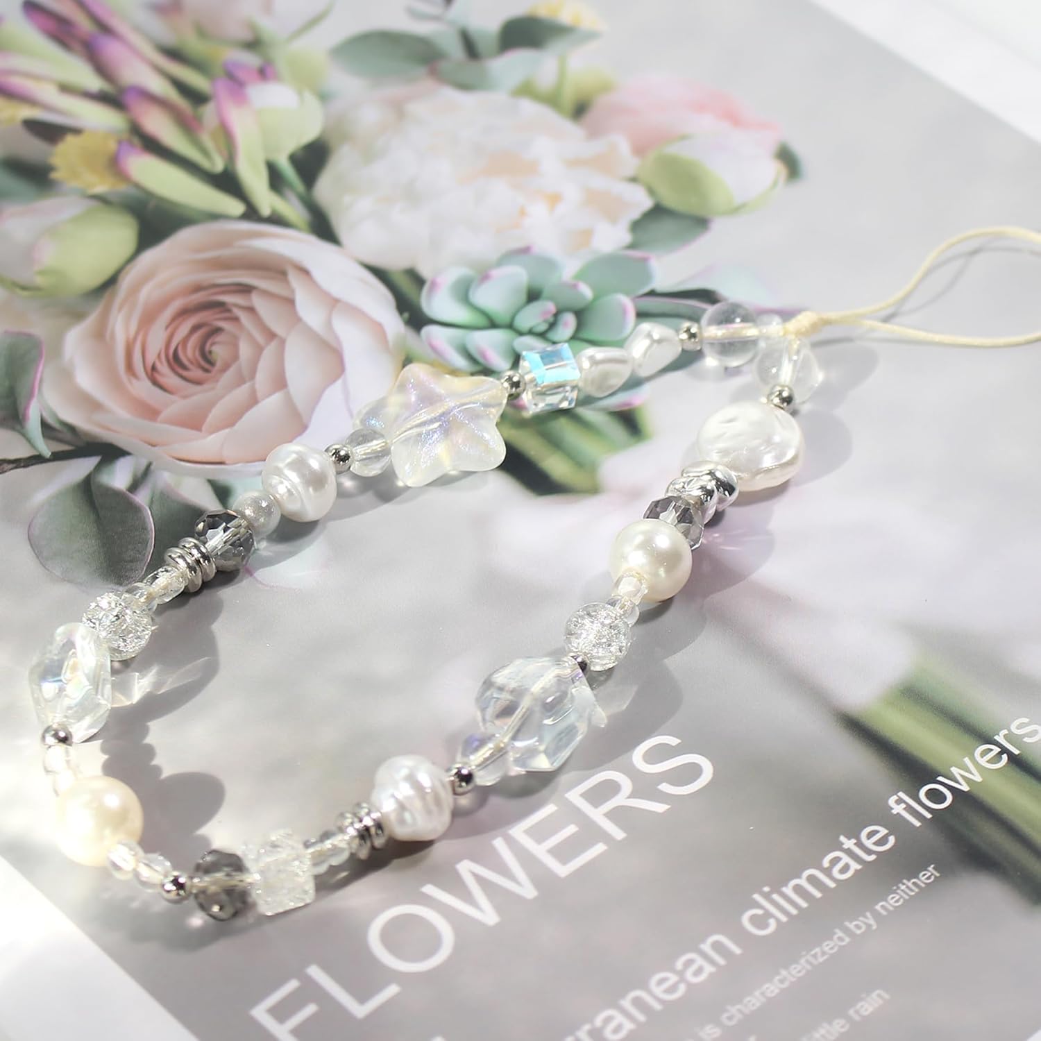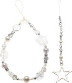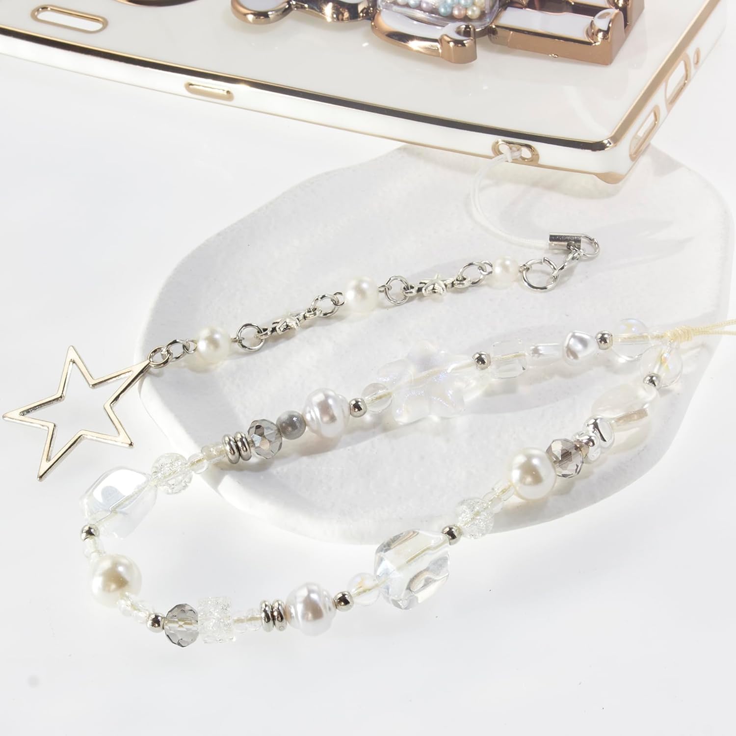 Tazweeq Beaded Phone Charms, Pearl Bracelet Wrist Strap Lanyard, Cute Camera Charm Strap, For AirPods Women’s Wallet Phone Keychain Decoration