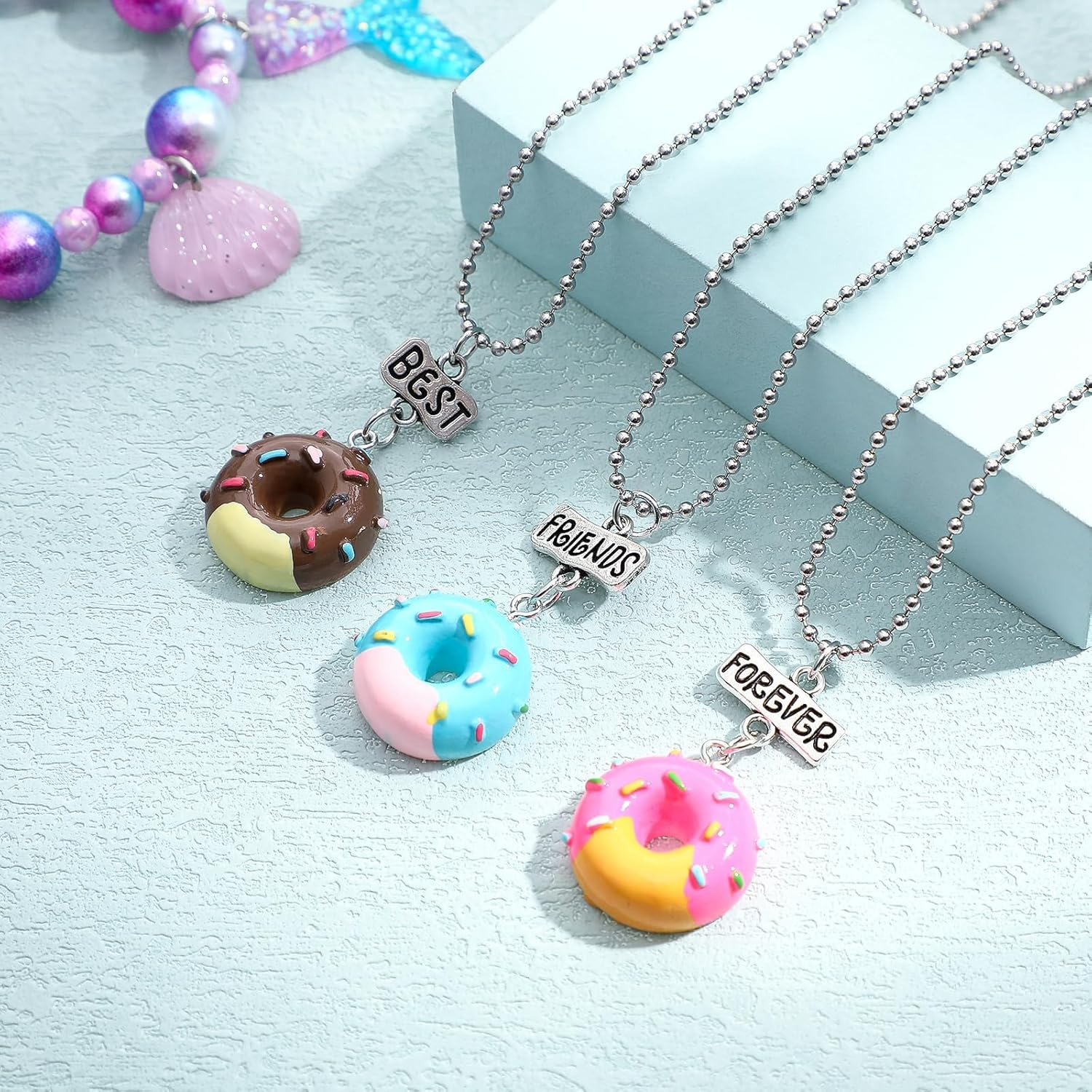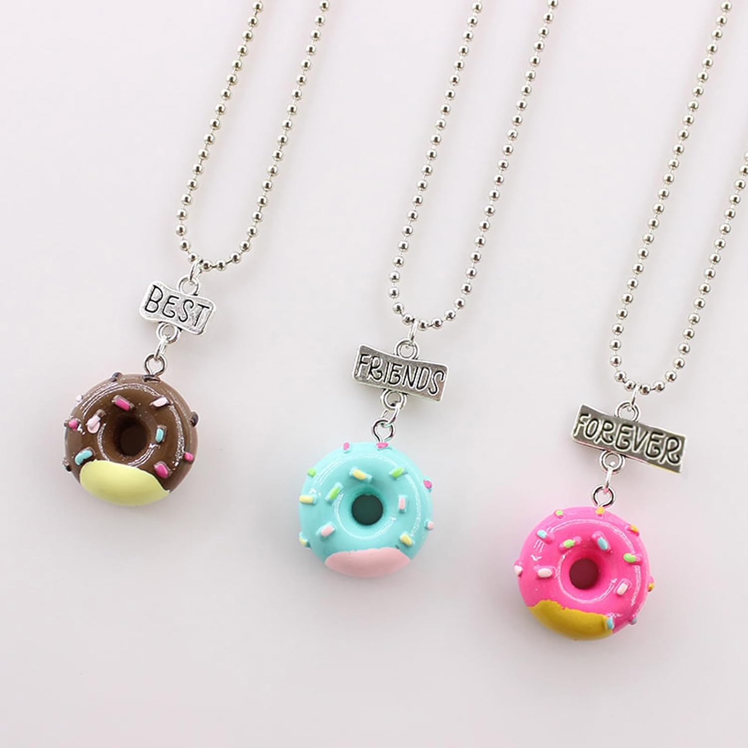 Tazweeq Friendship Bracelets 3 Pcs Best Friend Necklaces, Colorful Doughnut Best Friends Forever Friendship Necklaces, Creative Jewelry Sets for Women