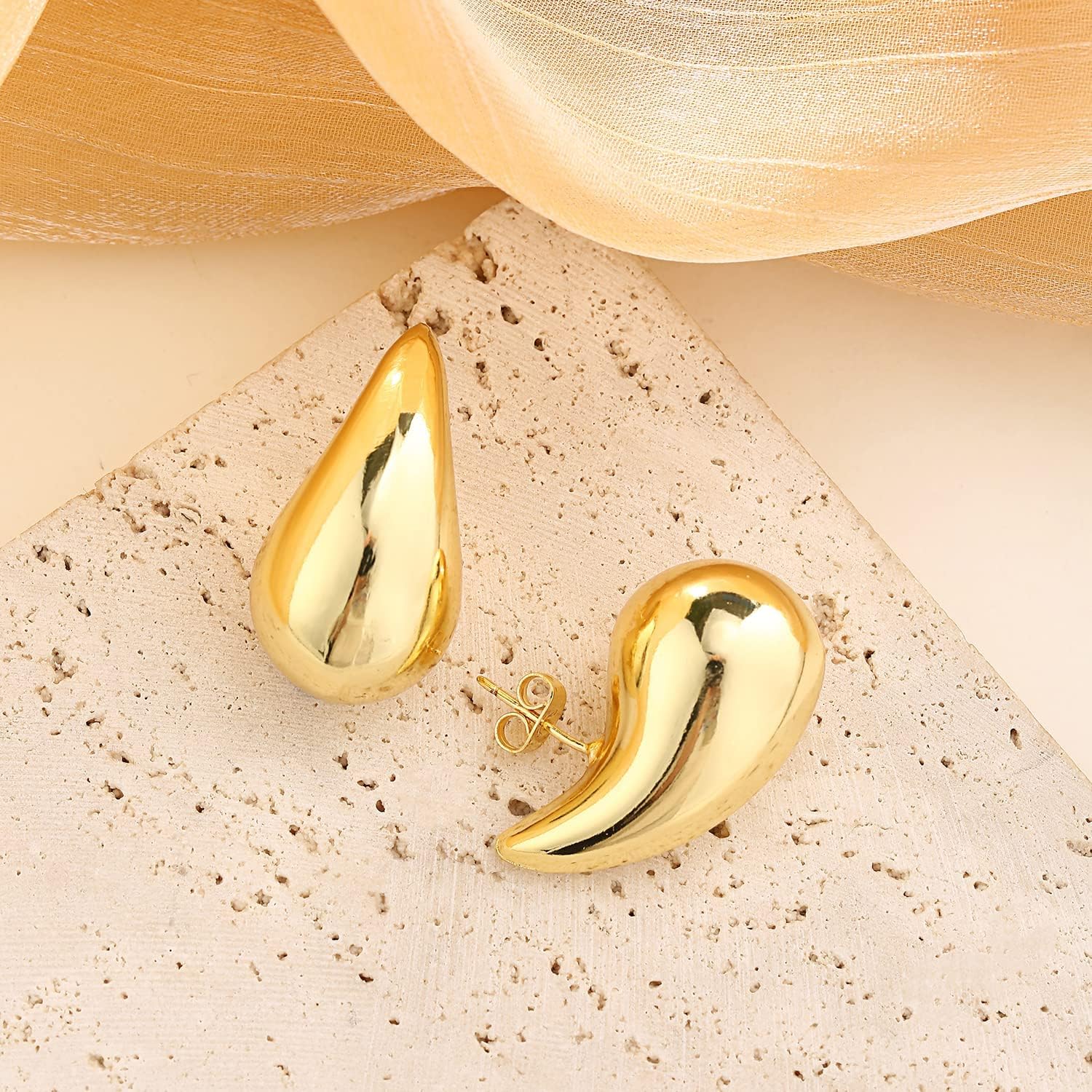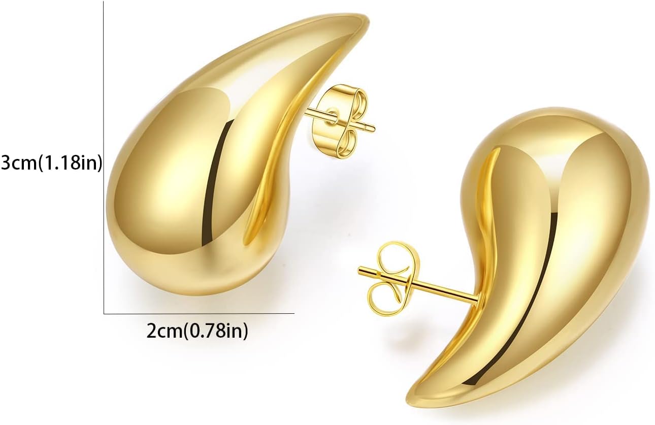 Tear Drop Earrings Dupes Extra Large/Small For Women, 𝟏𝟖𝐤 Gold Plated Hollow Chunky Hoop Hypoallergenic Lightweight Hollow Waterdrop Earring Fashion Elegant Gift Jewelry