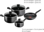 TEFAL Cookware Set | Dark Stone 7 pc Cooking Set | Non-stick | stewpots 22/24 cm+lids | saucepan 16 cm | frypan 24 cm | Aluminium | 2 Years Warranty | B491S785