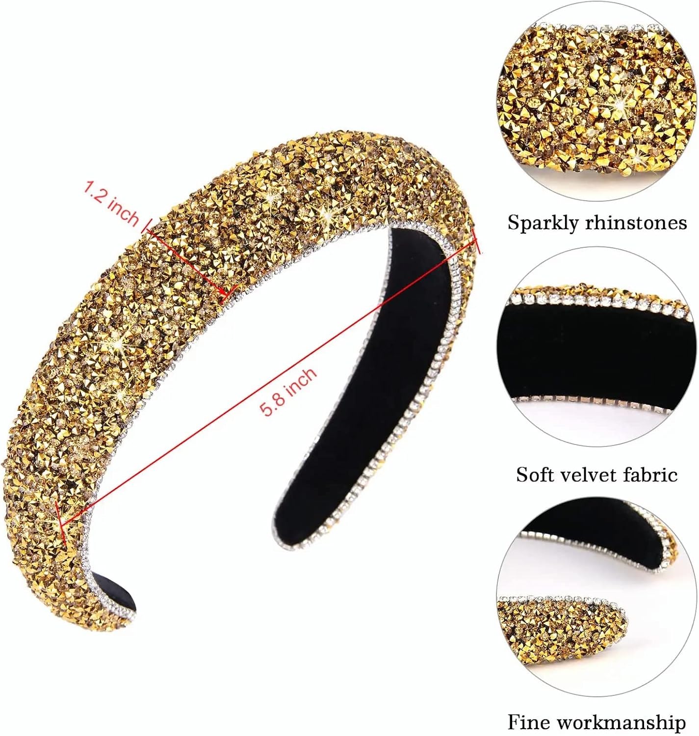 【SIZE】: The bling headband is about 5.8inch in diameter, 1.2inch in band width (as pictures). Suitable for most adult women.