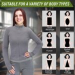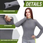 Womens Thermal Gym Tops Shirts, 2 Pcs Zip up Long Sleeve Womens Sport Jacket, Sports Yoga Tops, for Gym Yoga Running Hiking Cycling (Black and Grey)