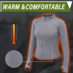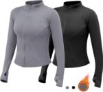 TERRIFI Womens Thermal Gym Tops Shirts, 2 Pcs Zip up Long Sleeve Womens Sport Jacket, Sports Yoga Tops, for Gym Yoga Running Hiking Cycling (Black and Grey)