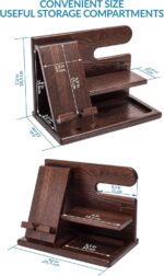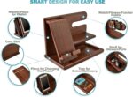 Teslyar Wood Phone Docking Station Ash Key Holder Wallet Stand Watch Organizer Men Husband Wife Anniversary Dad Birthday Nightstand Purse Father Graduation Male Idea Gadgets