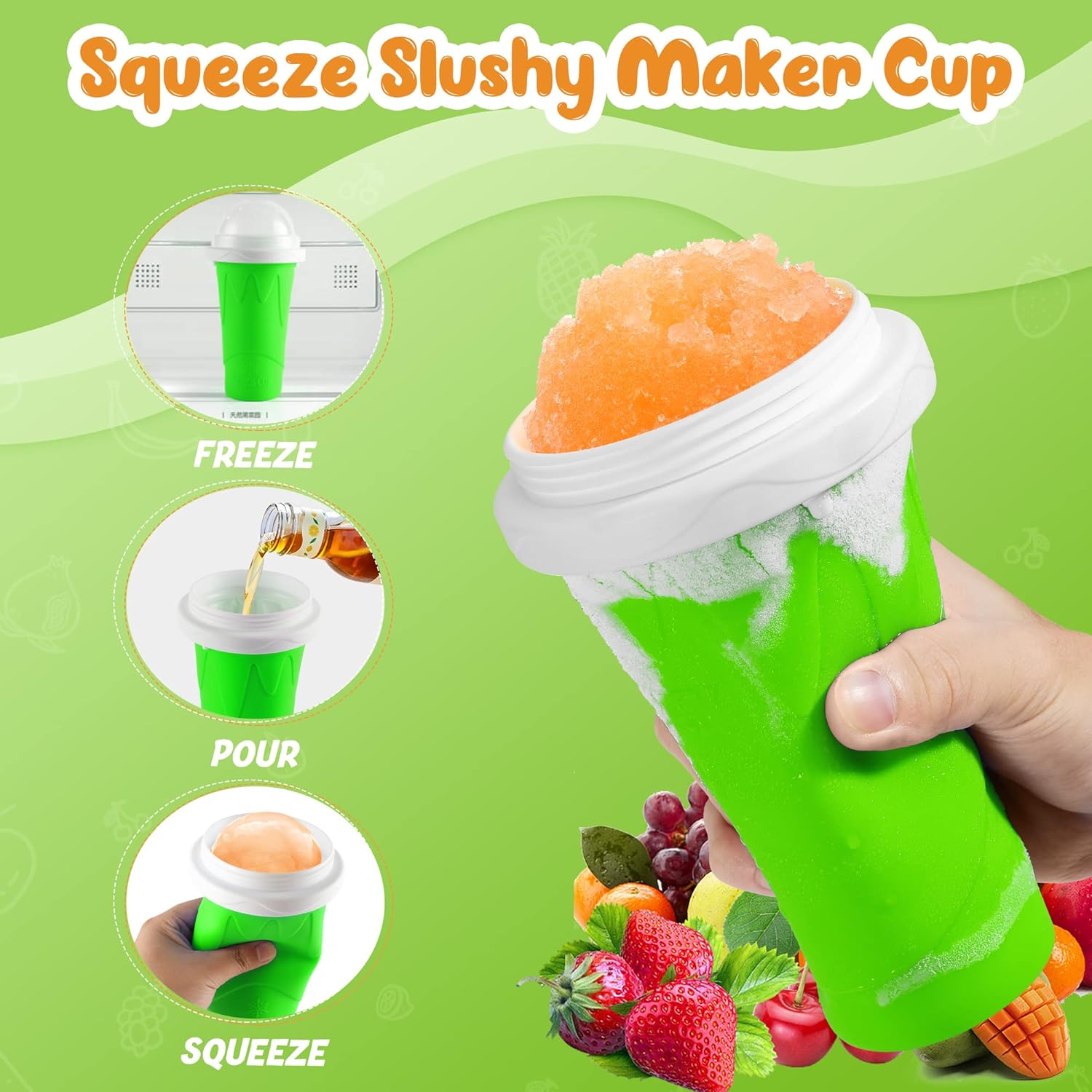 Slushy Cup, Frozen Magic Slushie Maker Cup Squeeze, Cool Fun Stuff Things Gadgets For Teens Kids (Green)