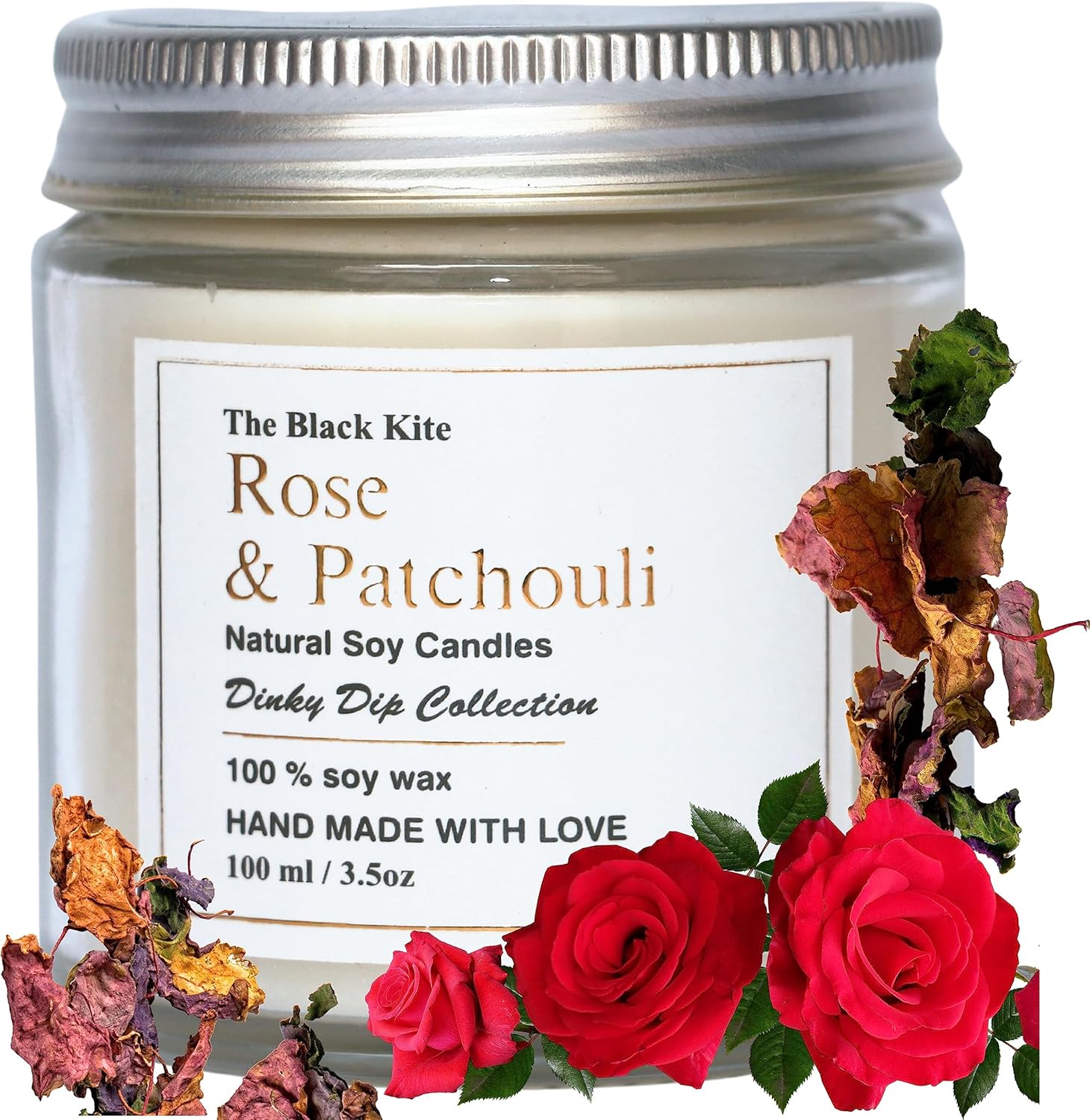 The Black Kite Scented Candles, Rose & Patchouli, Aroma Up to 25 Hours, 100gm, Aromatherapy Candles for Home Decor, Soy Candle Wax, Best Scented Candles Gift Set, Soy Wax Candles