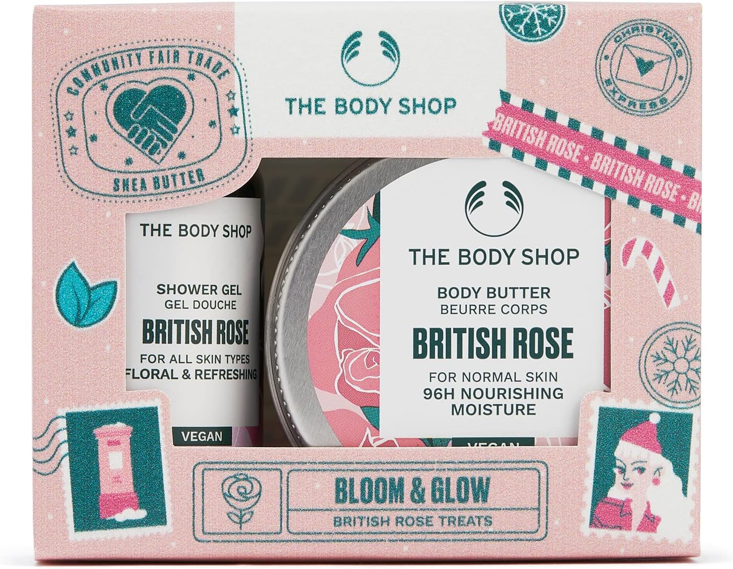 The Body Shop Bloom & Glow British Rose Treats Gift Set – Vegan Formula With Rose – Hydrating & Rejuvenating Skincare For All Skin Types – 2 Items