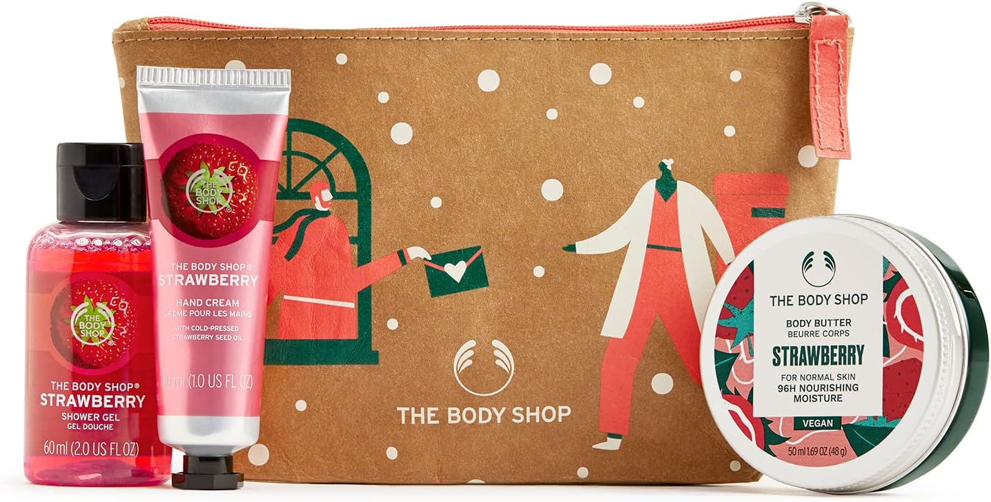 The Body Shop Jolly & Juicy Strawberry Mini Gift Set, Fruity & Refreshing Skincare Treats, 3 Count